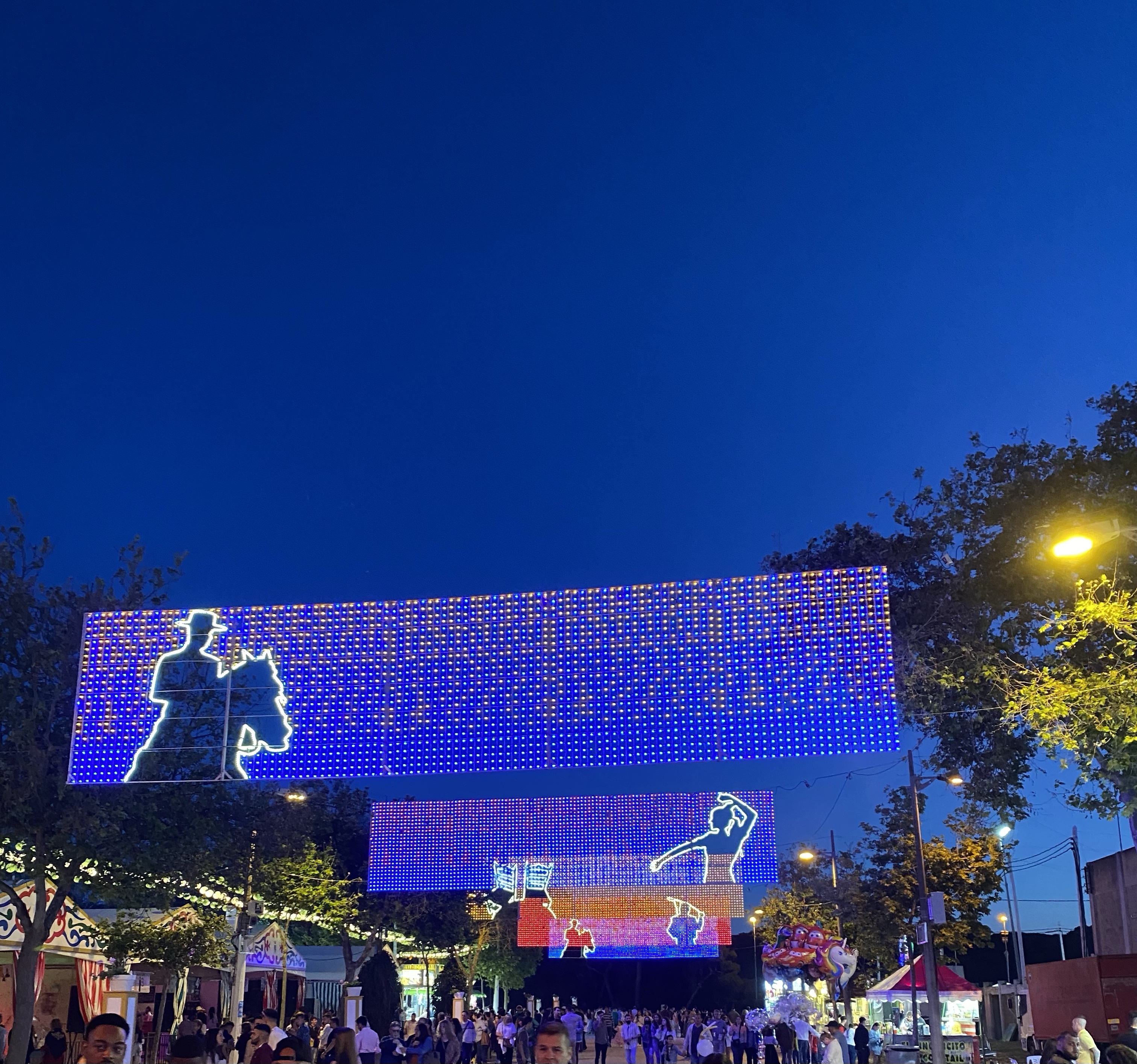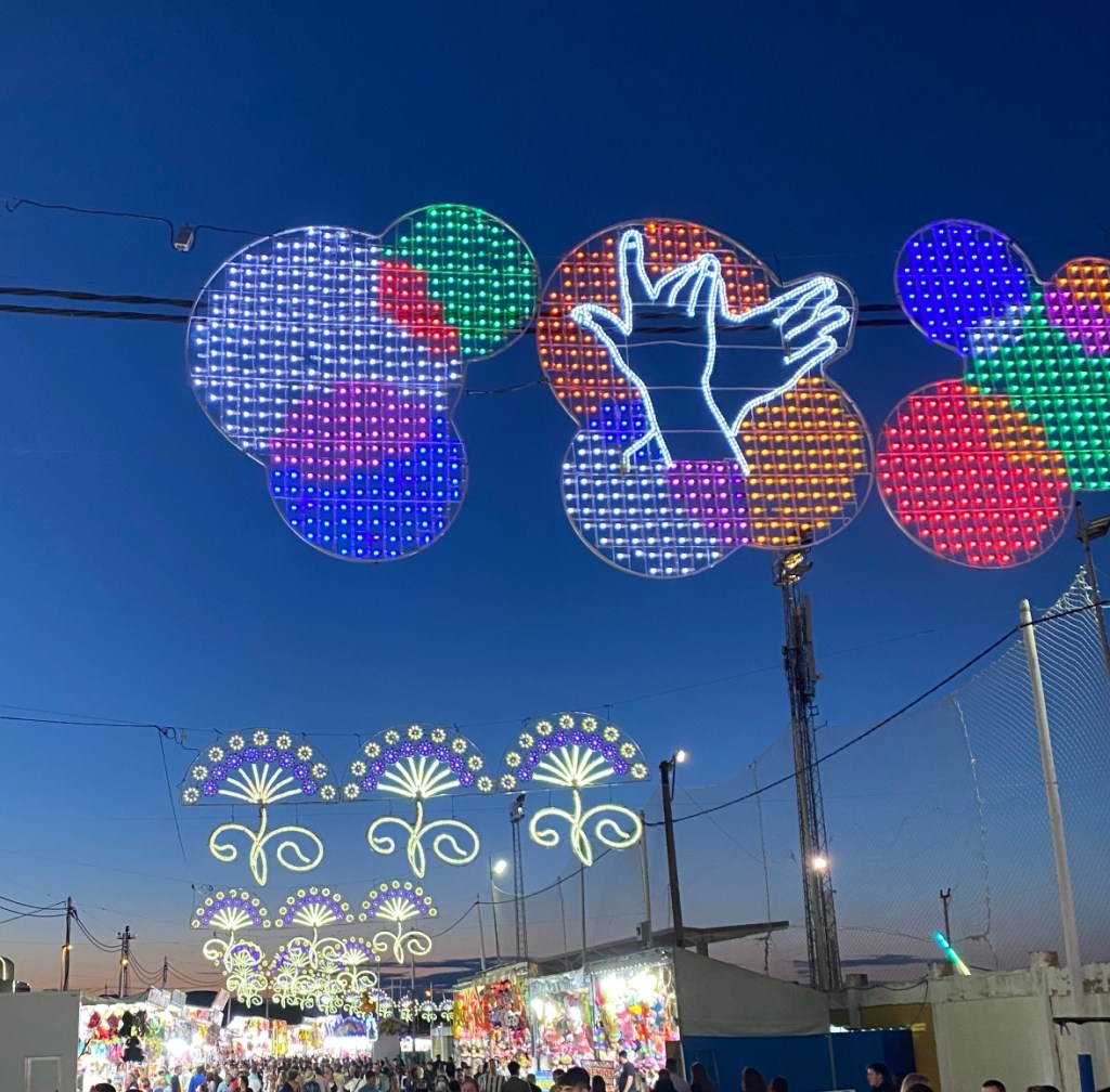 Our visit to the Féria yesterday was fun but we missed the lights at night – so back we went after dinner. Today was also 2 for 1 tickets for carnival rides which gave Mom and Dad a much better price point. The weather tried REALLY hard to rain on us and it came pretty close, we got about 10 minutes of light sprinkles. Somehow, what looked like a nasty weather system went around the Rota fairgrounds and left us with a very pleasant evening.