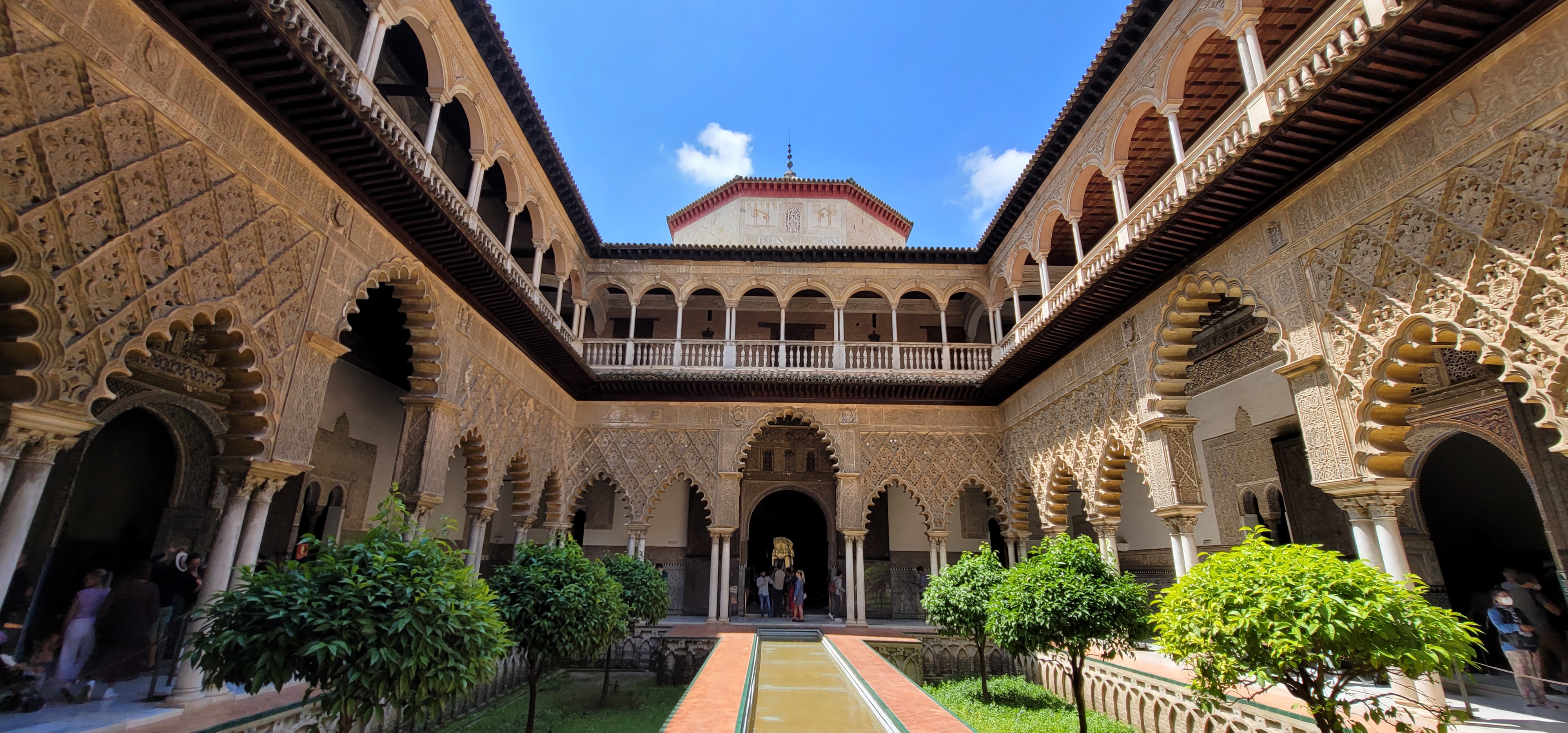 The palace is a preeminent example of mudéjar style – perhaps the best in the world. Mudéjar is the use of Islamic decorative elements in Christian architecture and was most popular in the Iberian Christian Kingdoms between the 13th and 16th centuries. It is spectacular. Not surprisingly the Palace has been used as film sets many times – most recently Game of Thrones.