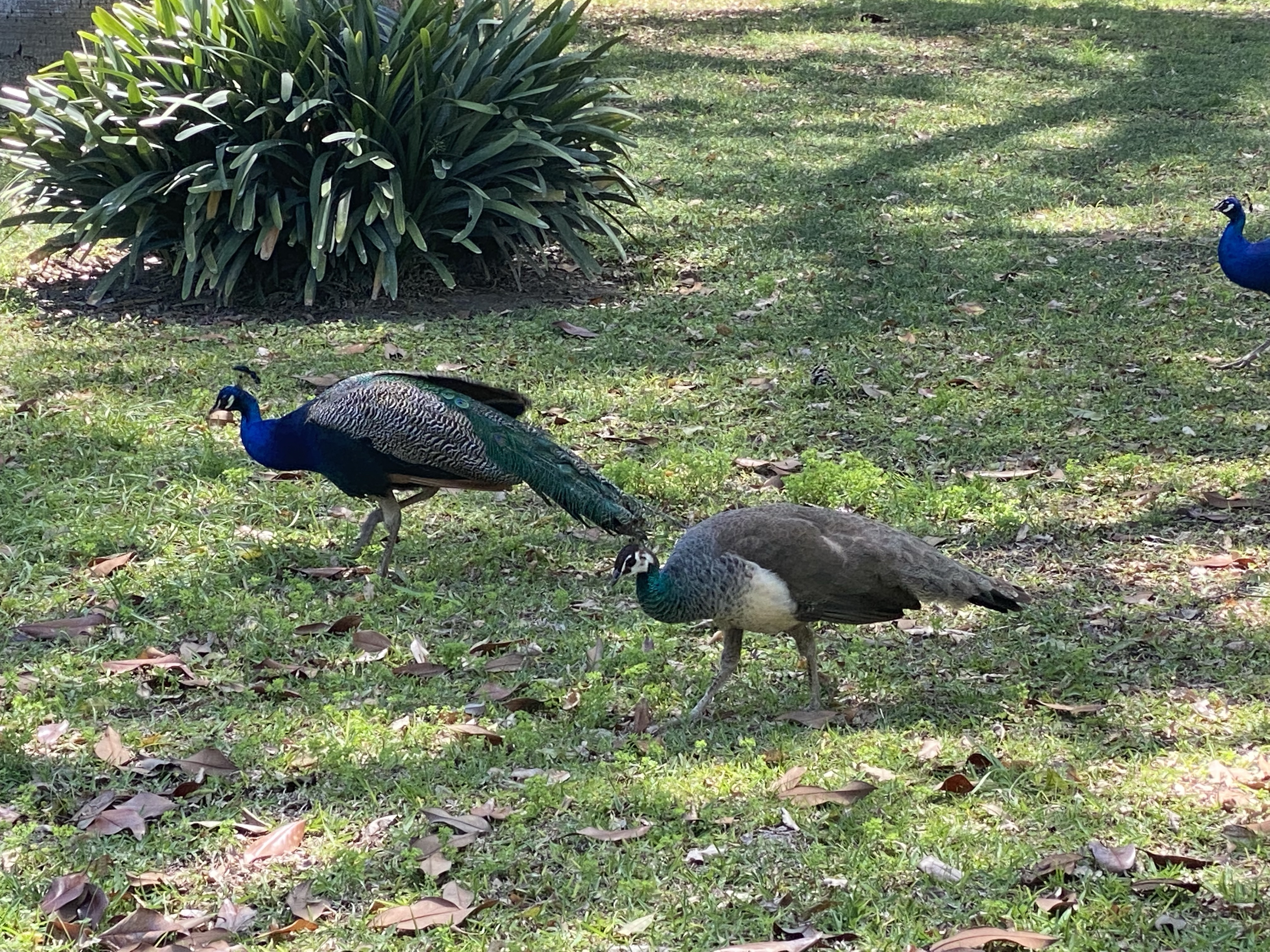 Outside the Palace are extensive gardens with pools, fountains, and peacocks!