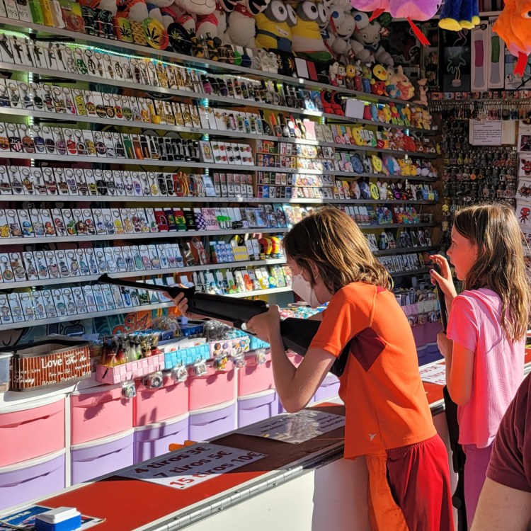 Both Suaram and CreeperKitty were eager to see if they could shoot some prizes off the shelves with their cork pop guns. SPOILER ALERT: They did. A cool Harry Potter sticker is now on the back of CreeperKitty’s tablet and Suaram has two new key chains.