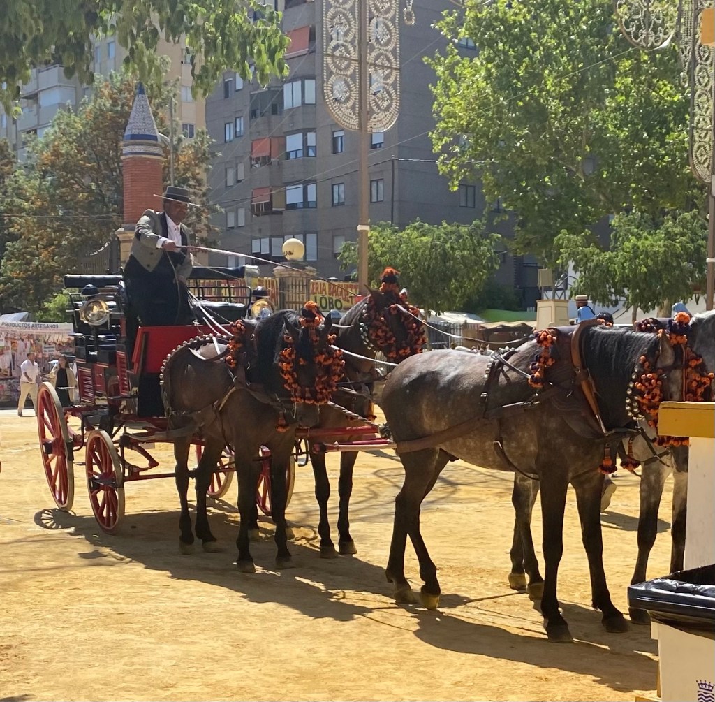 We journeyed to the nearby town Jerez de la Frontera today to makes some purchases of convenience and to experience another fair. This Jerez Féria is not a celebration of Spring as the one in Rota is. In Jerez, the fair is titled, “Feria del Caballo” which roughly translates to the Fair of the Horses.