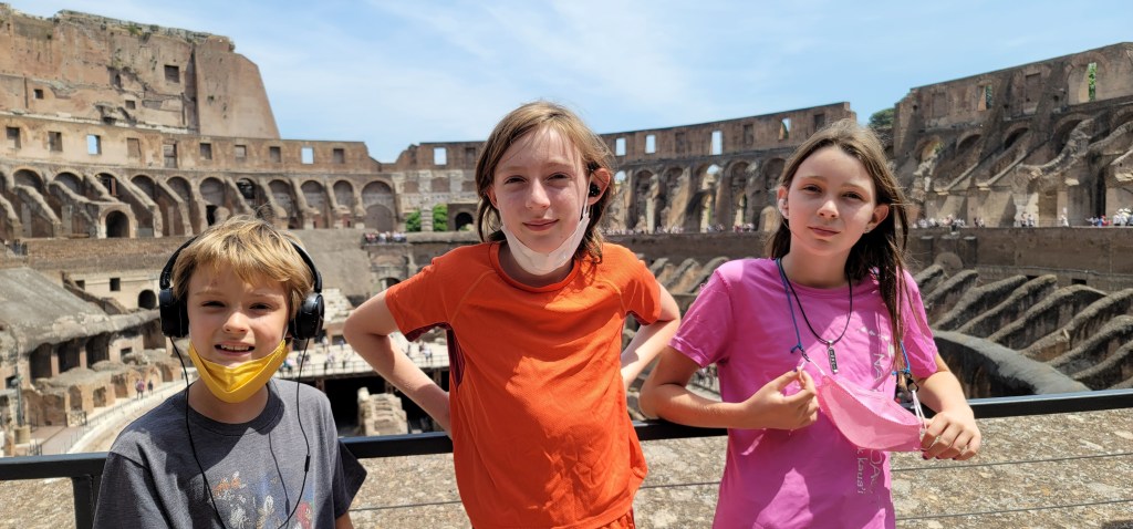 Neither Brian nor Tiffany have been to Rome so they were anxious to learn about the history and architecture. It is also one of the places the kids asked to see so it’s wasn’t terribly hard to get them hooked on the audioguide. We used Rick Steves’ free version today which is pretty kid friendly. It’s not overly filled with dates and names and there are a few jokes in there too. We spent about an hour wandering the halls and arches. There was a good sized crowd but no lines so we felt pretty lucky.