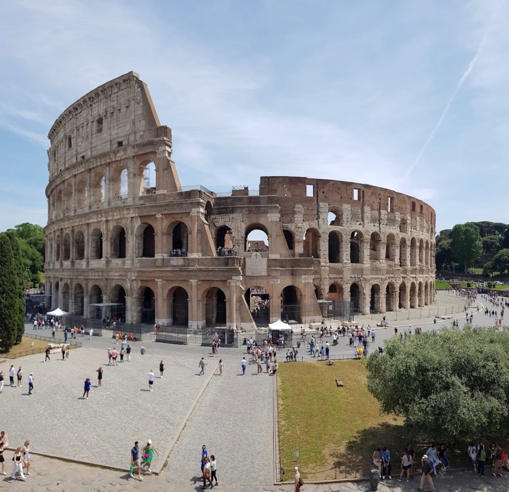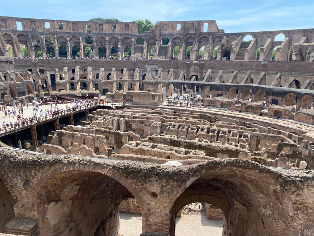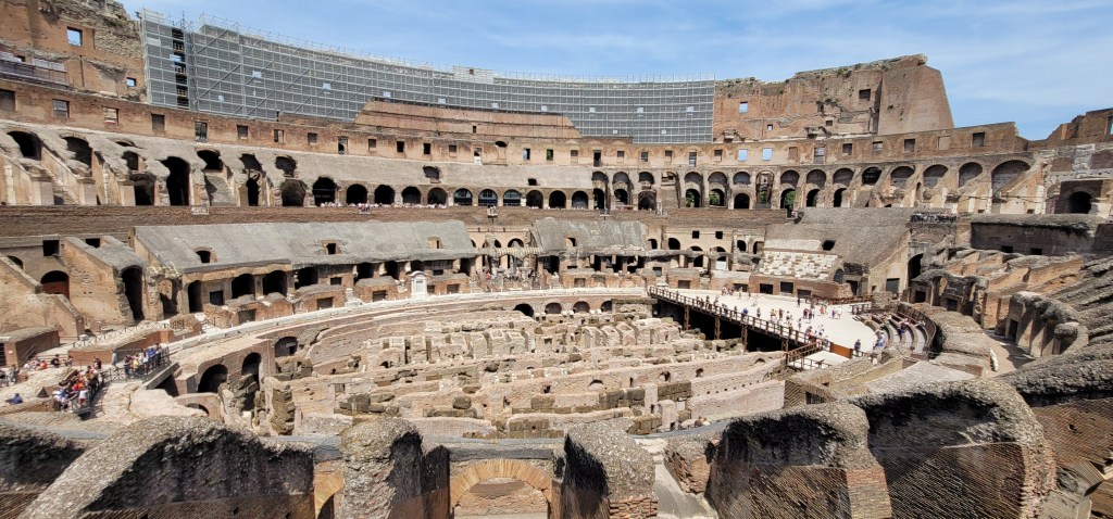 We were a bit hot and tired from the walk there – but as we approached the walls of the ruin our spirits lifted. Our first glimpse of the Arch of Constantine showed us we were in for a treat and then the walls of the Colosseum itself became visible.