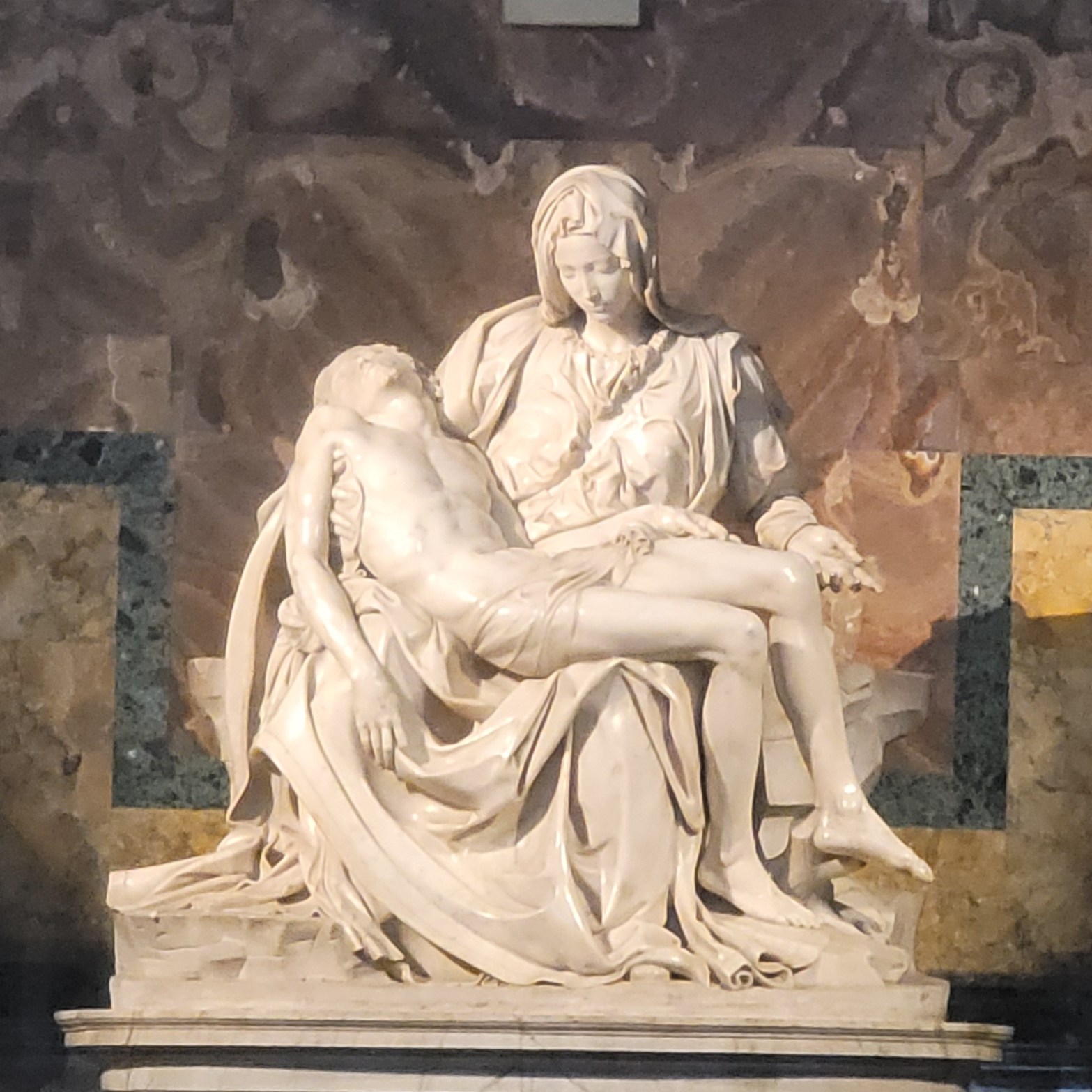 To the immediate right is Michelangelo’s Pietà – one of the most famous examples of Renaissance sculpture and the only work he ever signed. It is hard to believe how much life he could coax from a block of marble but it is incredibly impactful to see in person.