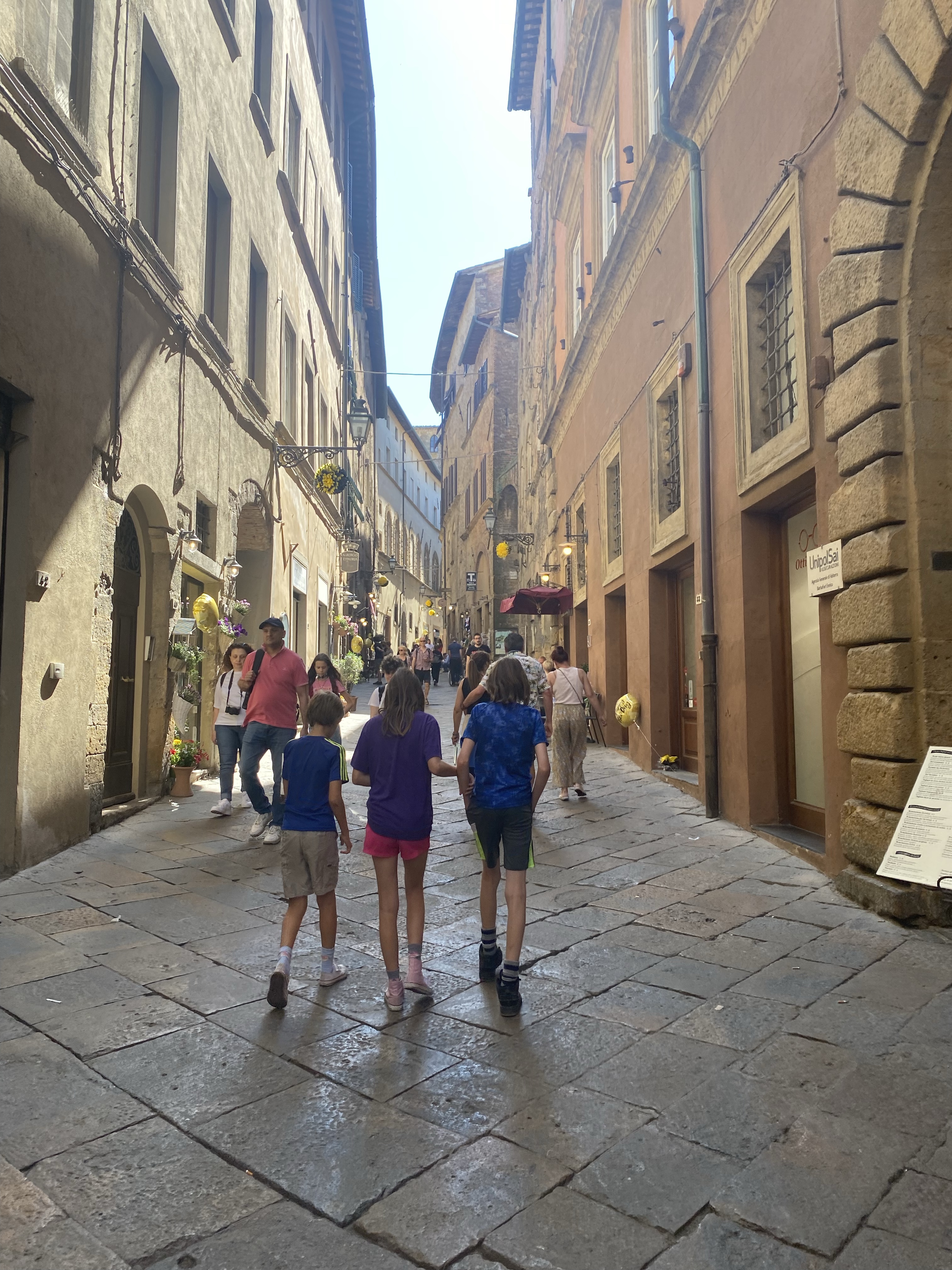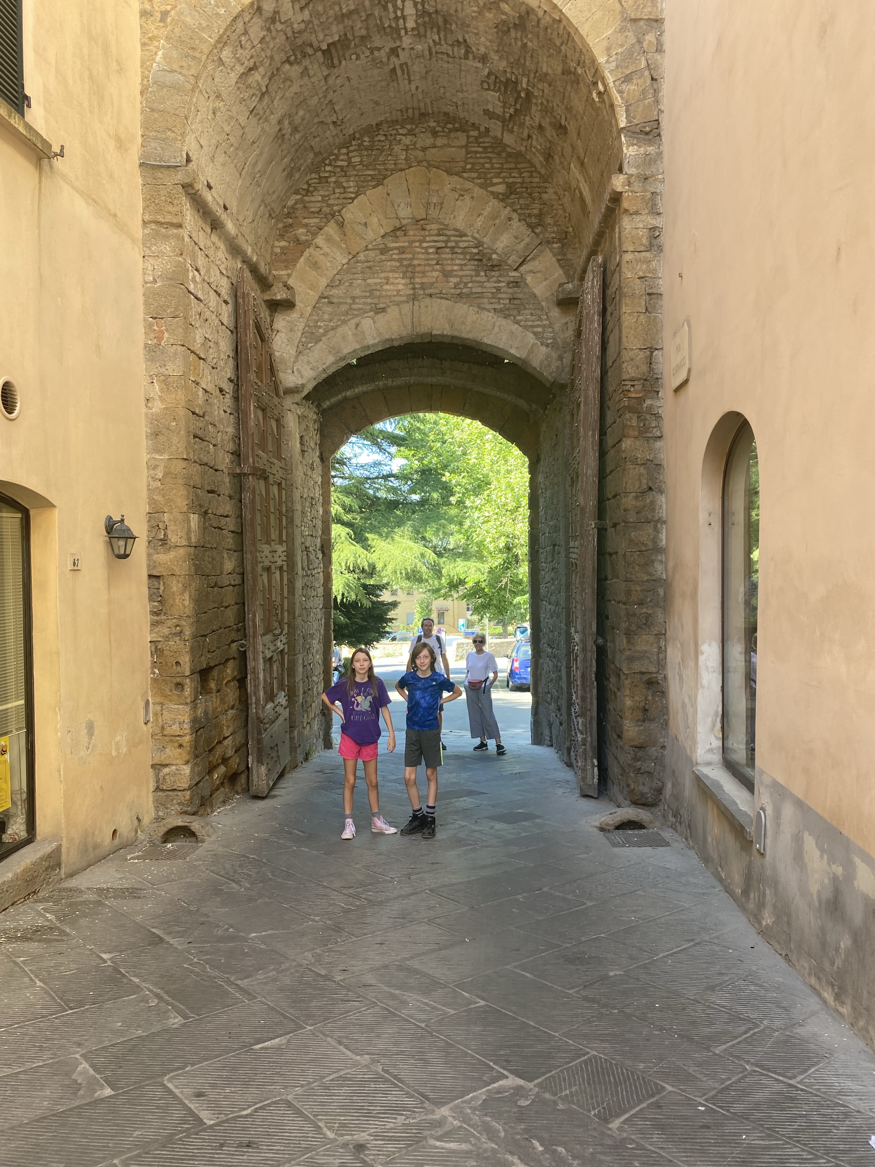 Today’s Adventures took us on a short drive through the picturesque Tuscan countryside to the town of Volterra. A walled city dating from the 8th Century BC, it featured narrow streets, charming outdoor eateries and a couple of playgrounds for the kids.