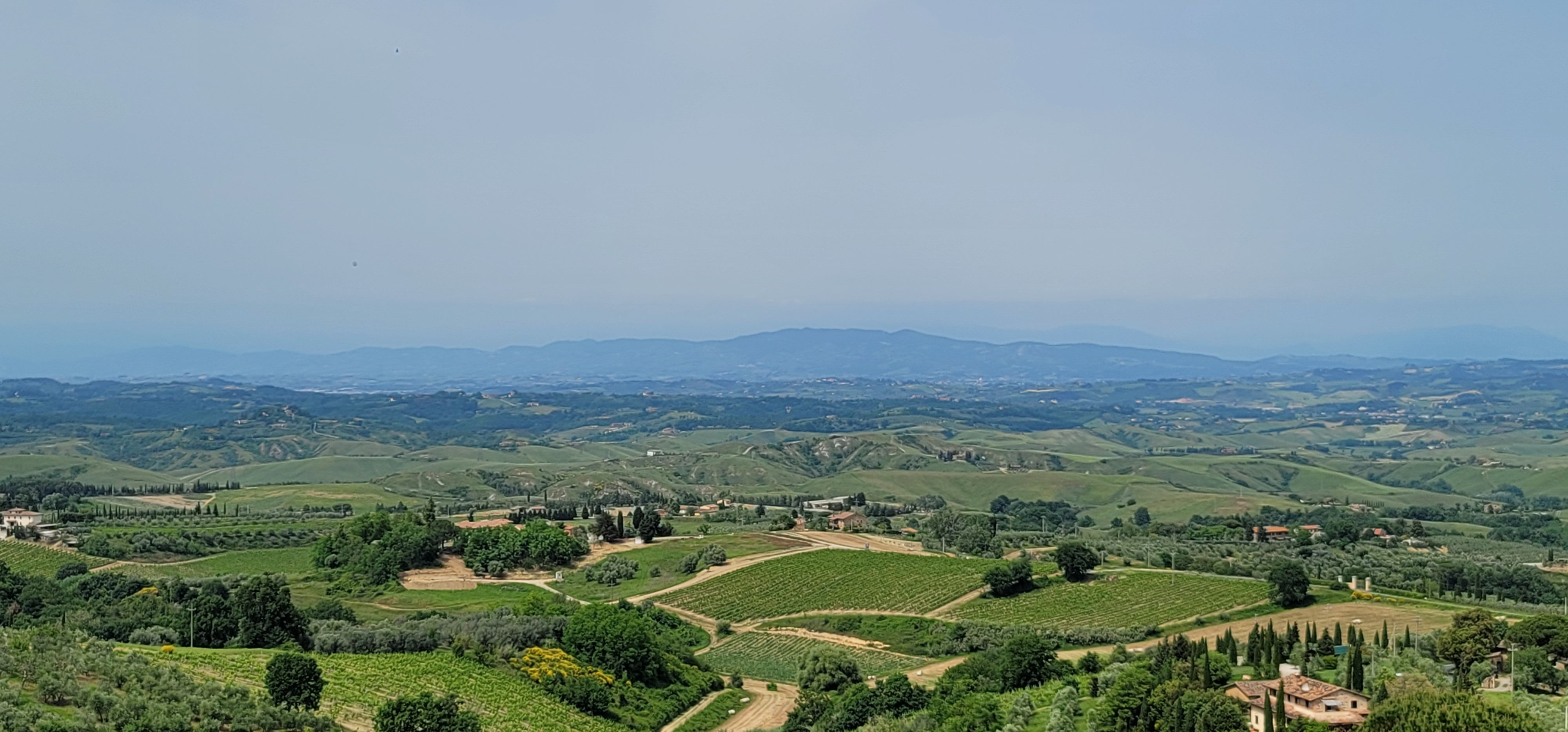 Their daughter typically joins them but was away at the local stadium cheering on the Montaione football team which was playing in their league finale today. We could faintly hear cheering from the garden. This answered our questions about the ghost town that we saw earlier in the city center.