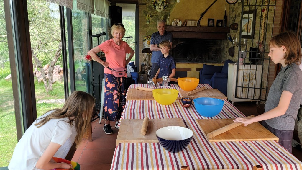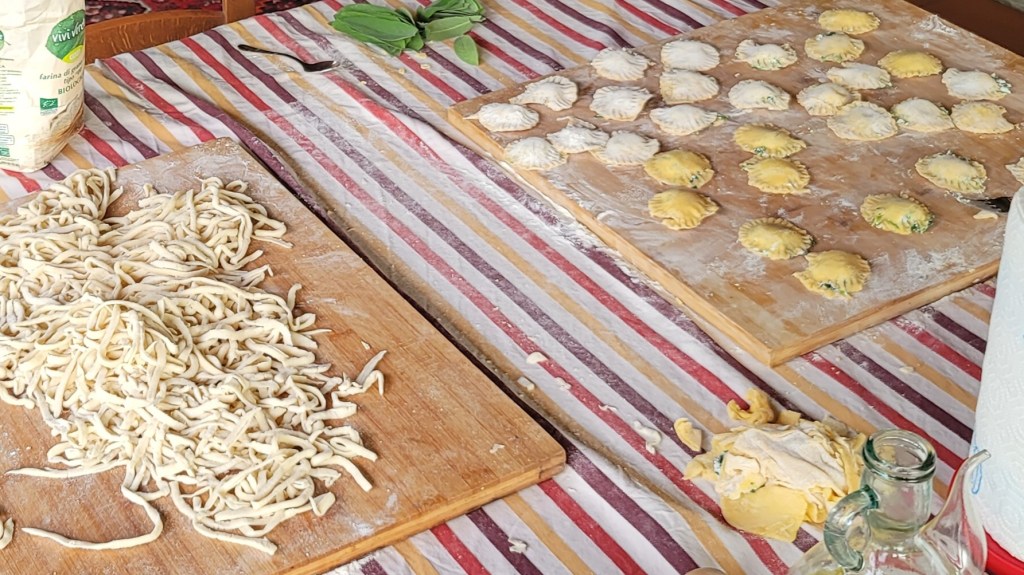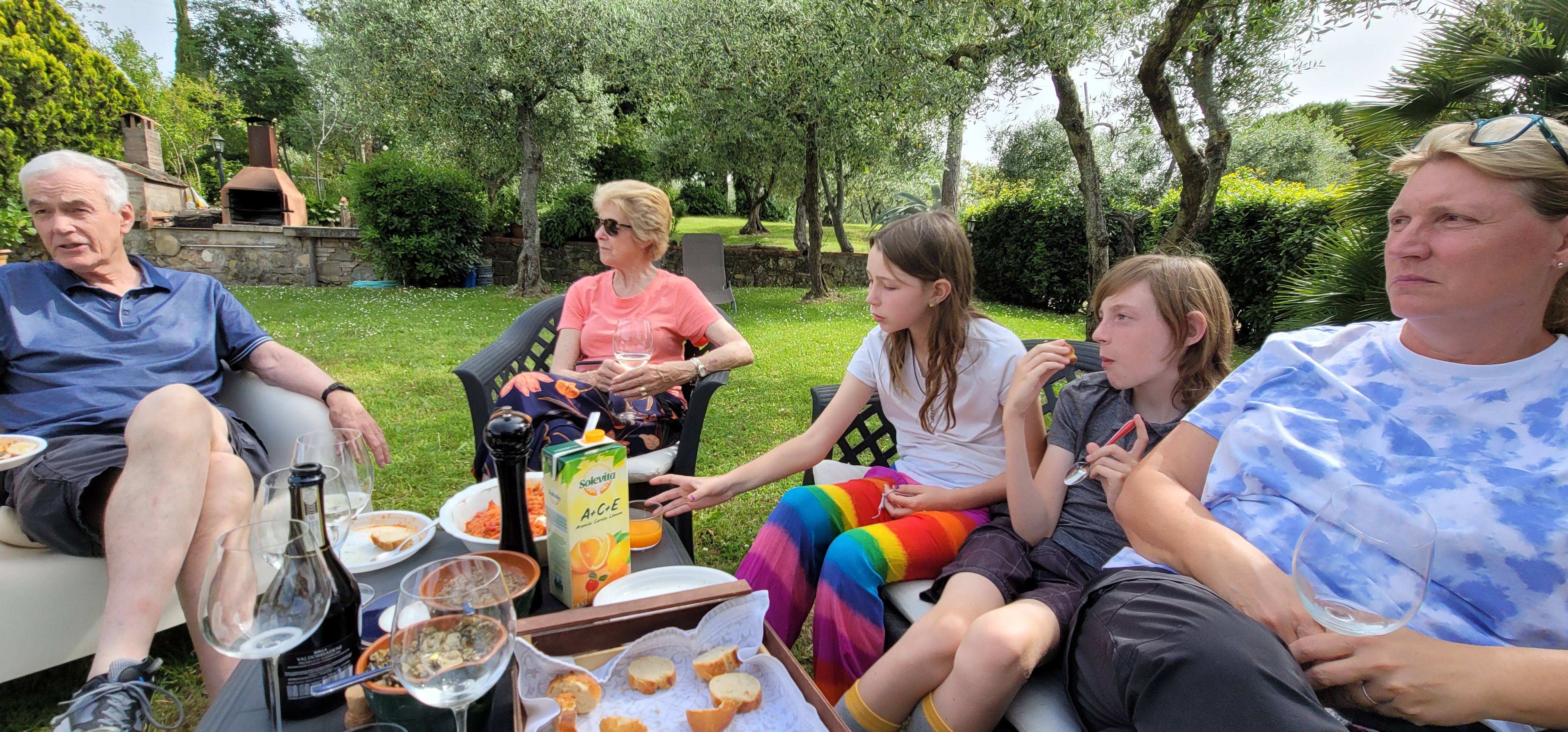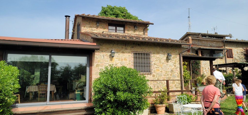 We sat outside on their front lawn getting acquainted and enjoying some pane, paté, pappa al pomodoro and prosecco. We also had some white truffles in oil, a local delicacy. They shared some of their family’s olive oil pressed from last year’s harvest. Apparently the oil can have a bit of a spice when the weather yields limited rain. The 2021 oil was smooth and tasty but 2022 might be a bit piccante.