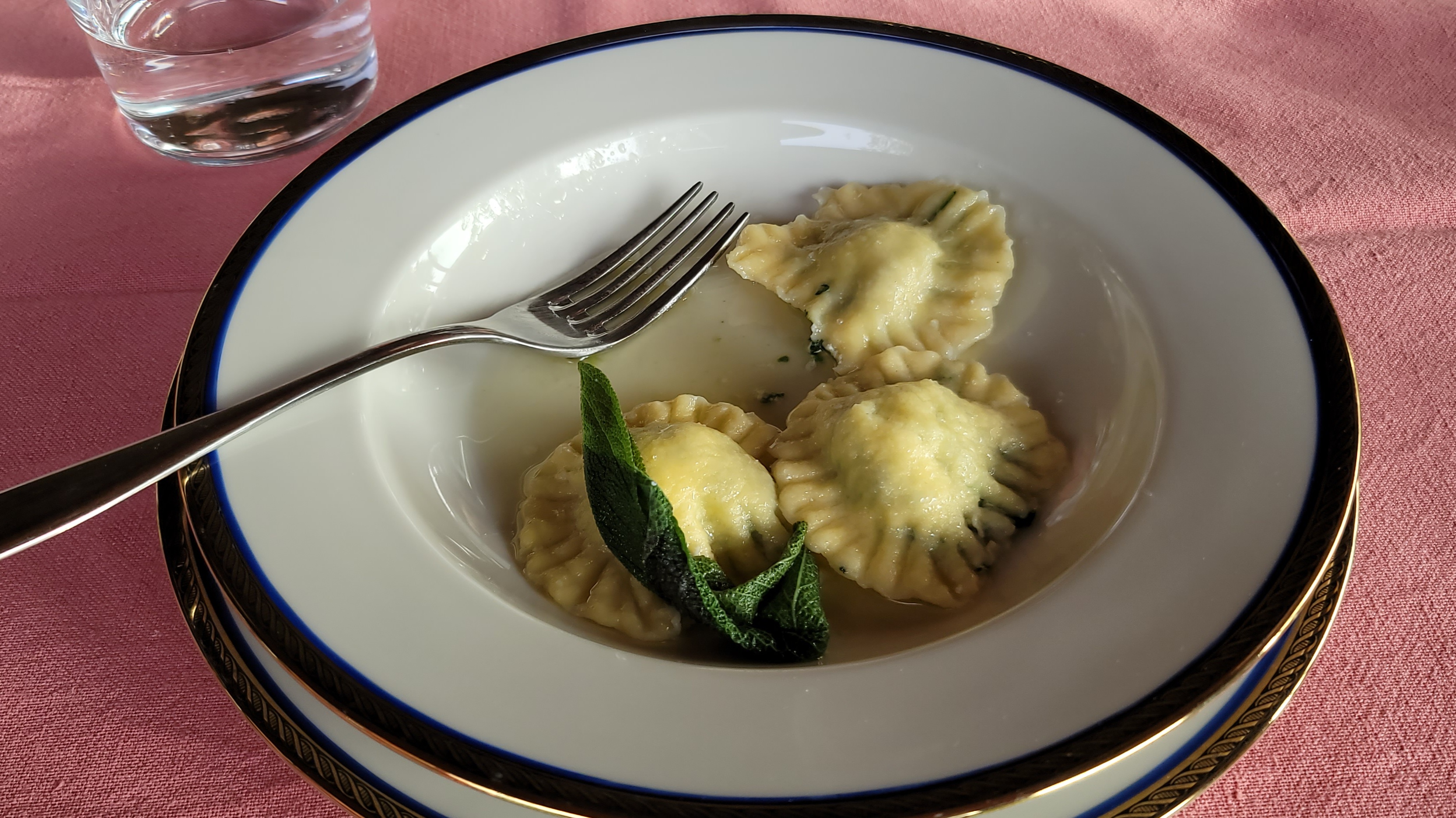 While the dessert set further in the refrigerator we could return to preparing the ravioli and pici. The ravioli was stuffed with a simple ricotta and spinach mix and sealed with a fork impressed on the edges.