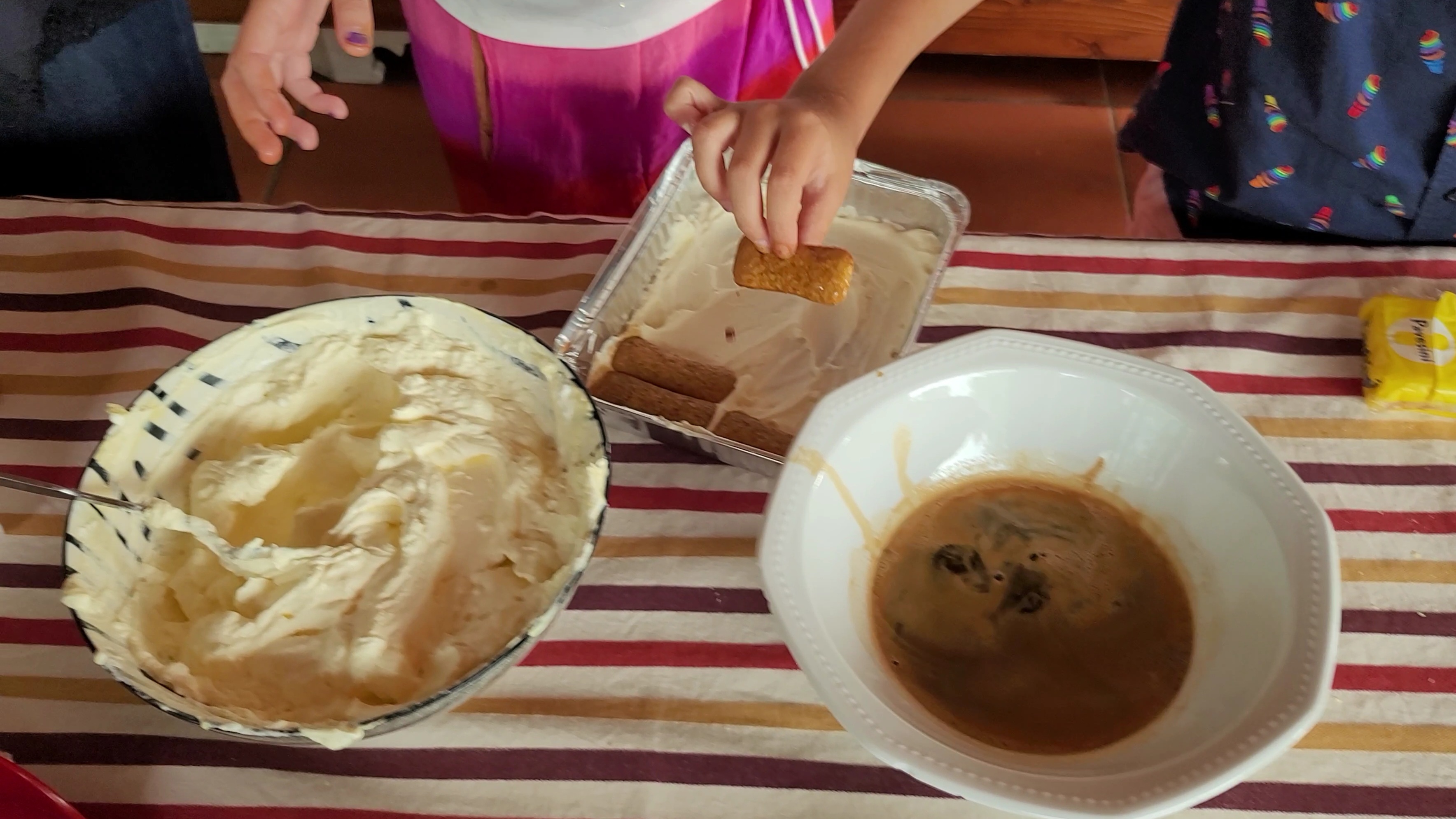 While the pasta dough waited to be cut into strips or formed into ravioli, our Adventurers prepared the dessert. The tiramasu recipe required only a handful of ingredients but required vigilant mixing and layering of the cream, the espresso-dipped lady fingers and the cocoa powder.