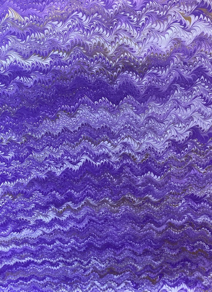 Paper marbling is done by floating colors on a liquid – either water or an aqueous glue-like ‘size’, creating patterns and then transferring the patterns to paper or other absorbent surfaces. The technique may have started in China but for sure was done in Japan in the 12th century, Islam by the late 15th century and made it to Europe in large scale by the 17th century. Florentine bookbinders became particularly recognized for the skill of their designs in calligraphy paper and endpapers in books. Over time, as the craft died out through most of Europe, it steadily became more centered in Florence which is now one of the only places with artisan workshops making handmade marbled paper.