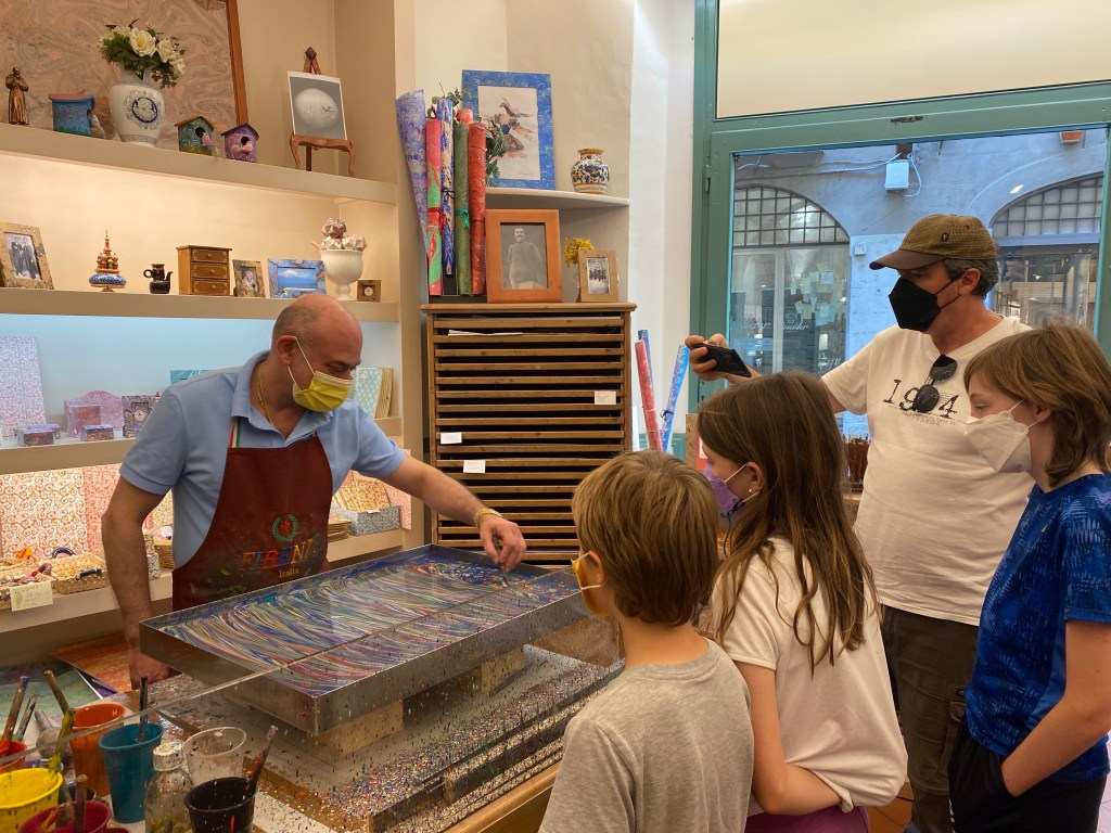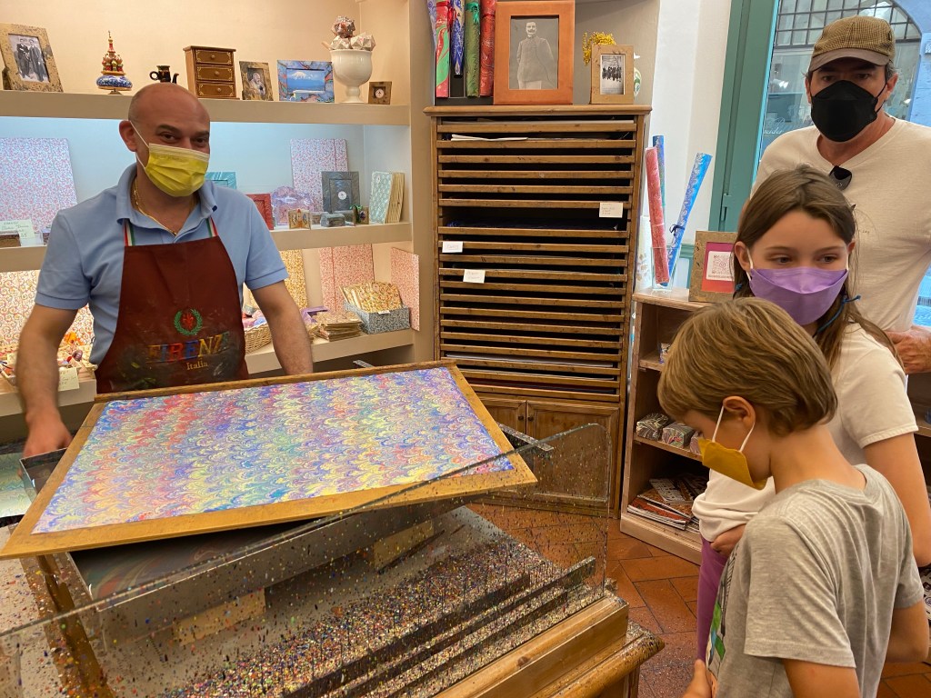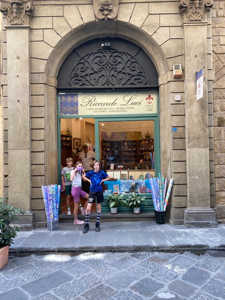 We went to a shop about a 10 minute walk from our hotel. It’s owned and named for Ricarrdo Luci, a 4th generation book binder and marbled paper artist. His shop is filled with beautiful examples of his handmade leather notebooks as well as marbled paper and items made from them.