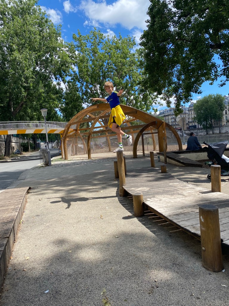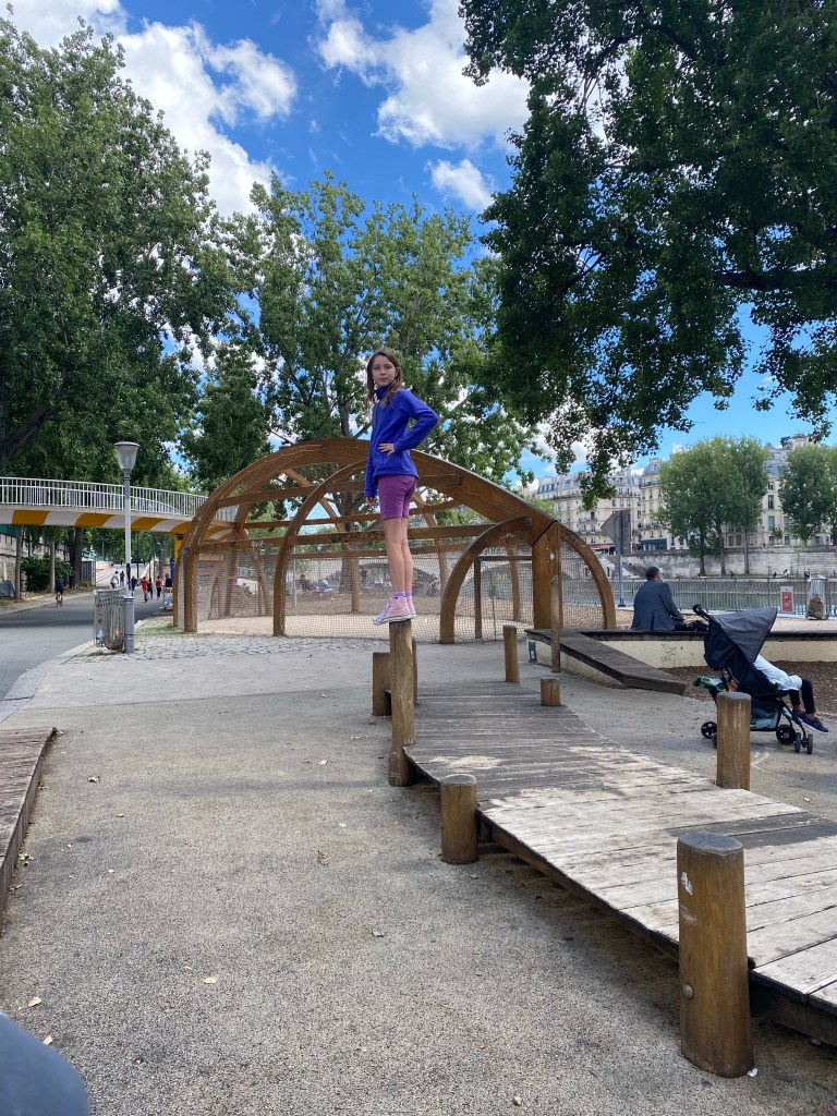 We found a charming riverside park during our trek to the Seine and the kids played here for awhile.