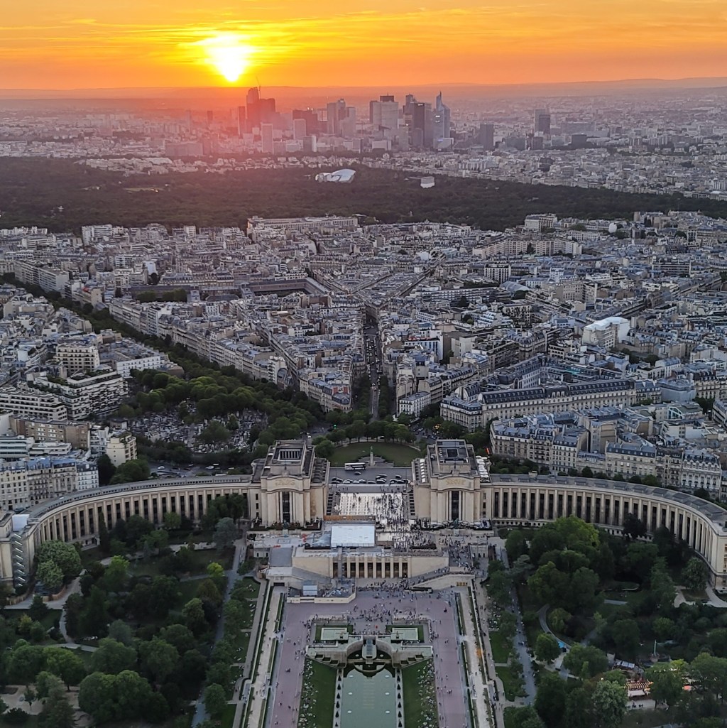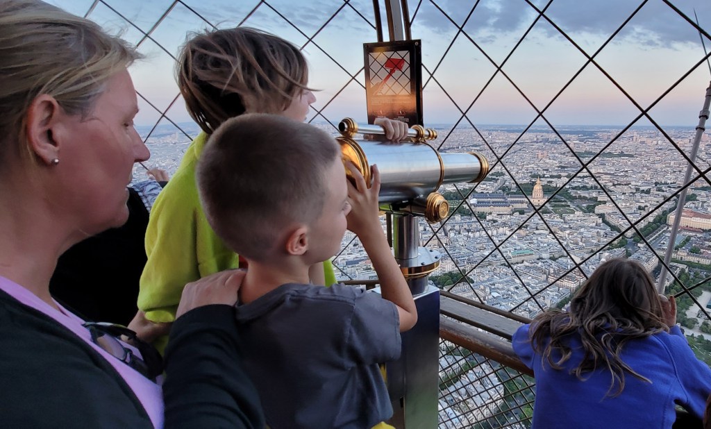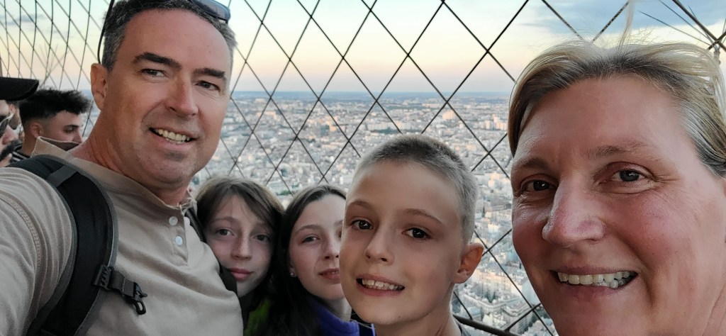 Up we went to very top where we were provided with some wonderful views of Paris shadowed by the setting sun against the tower.