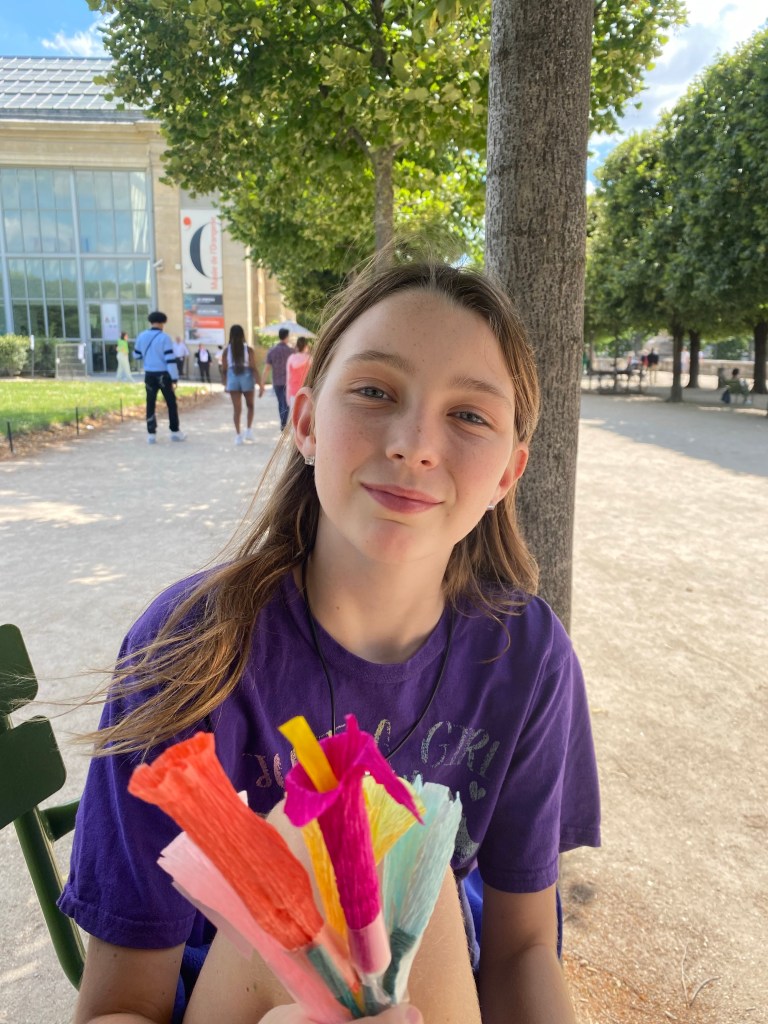 Outside, the kids worked with crepe paper to generate flowers like they had seen the Impressionists create on canvas.