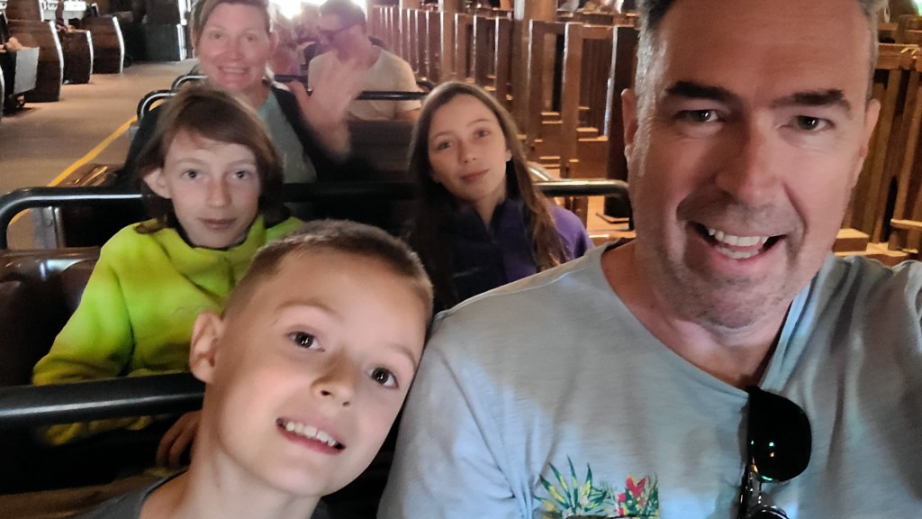 Tiffany was almost persuaded to vote with the 2 older kids for “BTM”, as they quickly dubbed it. Brian convinced her that their favorite ride was the calm 10 minute shuttle back to the hotel.