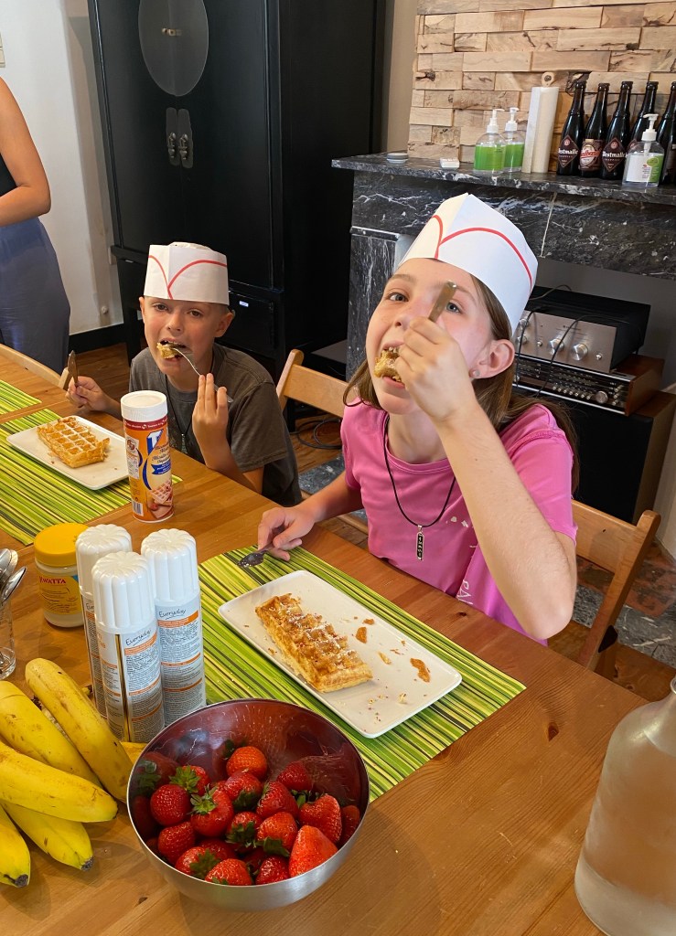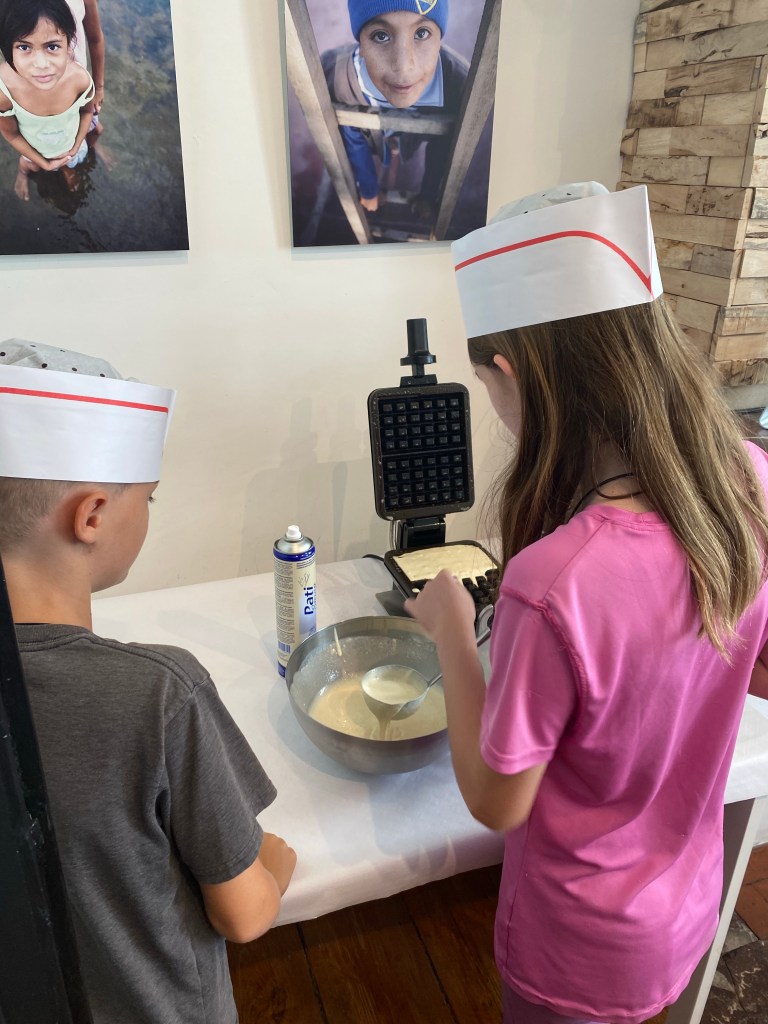 Our next stop was a cooking class! If you’ll recall, the kids wanted two things in Belgium – chocolate and waffles so today was all about the waffles.