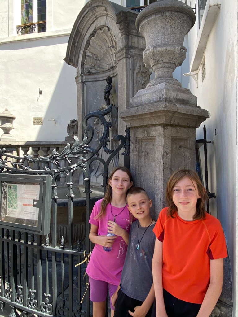 Not surprising for something so symbolic and so small, its history is filled with instances of theft or attempted theft. So much so that in the 1850s it was surrounded by gates (no one could get to the water anymore so it became purely decorative) and in 1965 it was moved to the Brussels City Museum. What we saw today was a replica but it still gave us a sense of the Belgian folk humor it is said to represent.