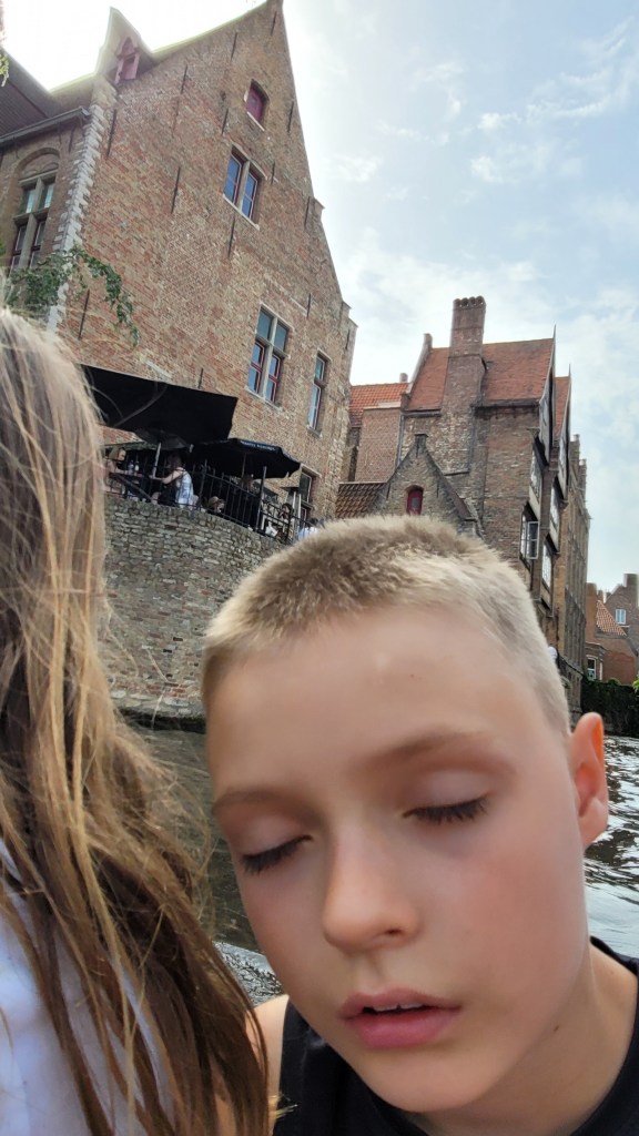 We’d worn ourselves out pretty well, to the point where CreeperPuppy was dozing on the boat. But we had one more task before we left town – Street Waffles!! We got them with no toppings and ate them while we walked – just like true Belgians. They were warm, sugary and delicious. The taste was similar to funnel cakes you get from the fair.