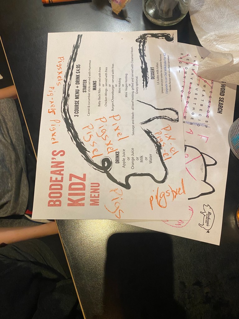 Toward the end of the meal CreeperKitty realized it was comprised of tiny individual pigs which Suraum quickly dubbed pig-xels instead of pixels. or pigsels. or pi(gs)els. We brainstormed laughing for 10 minutes on how to spell it but couldn’t agree.