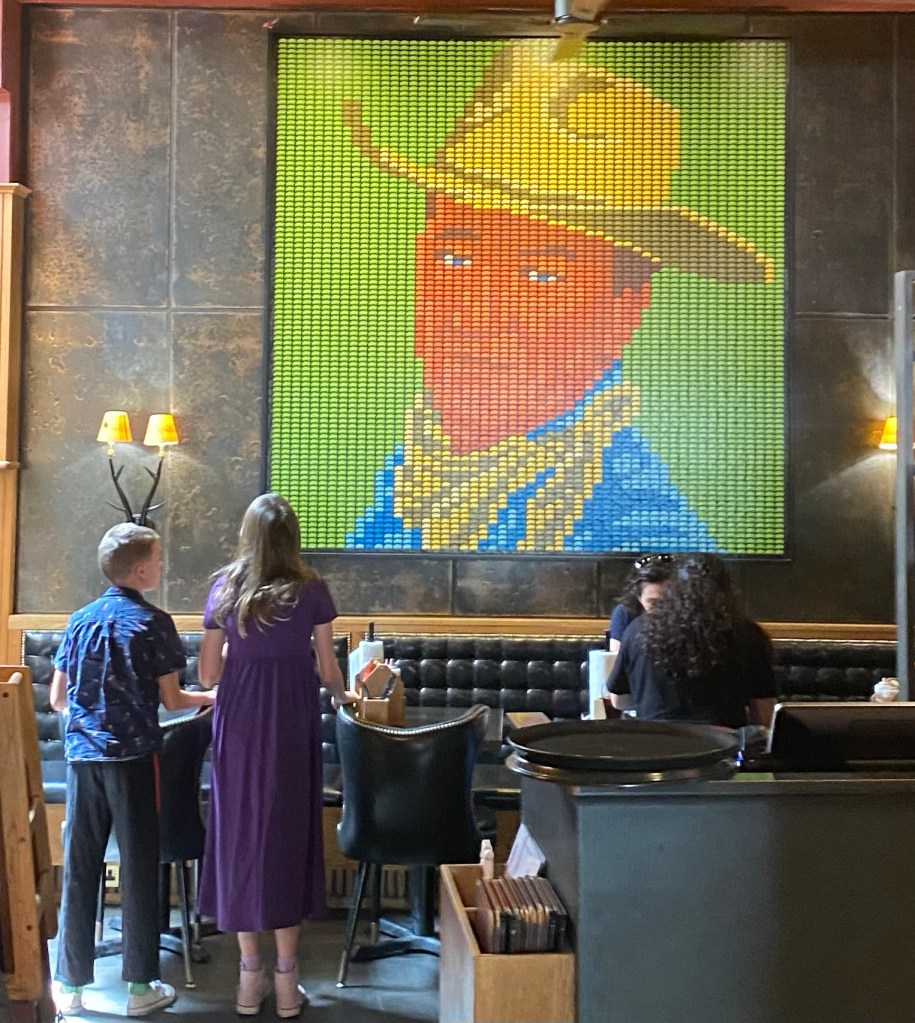 We chose Bodean’s BBQ for lunch. It claims the best BBQ east of the Atlantic which it could well be but it was ‘okay’ by our standards. Pleasantly less expensive than we expected. The decor was all longhorn steer skulls and a very large picture of John Wayne.