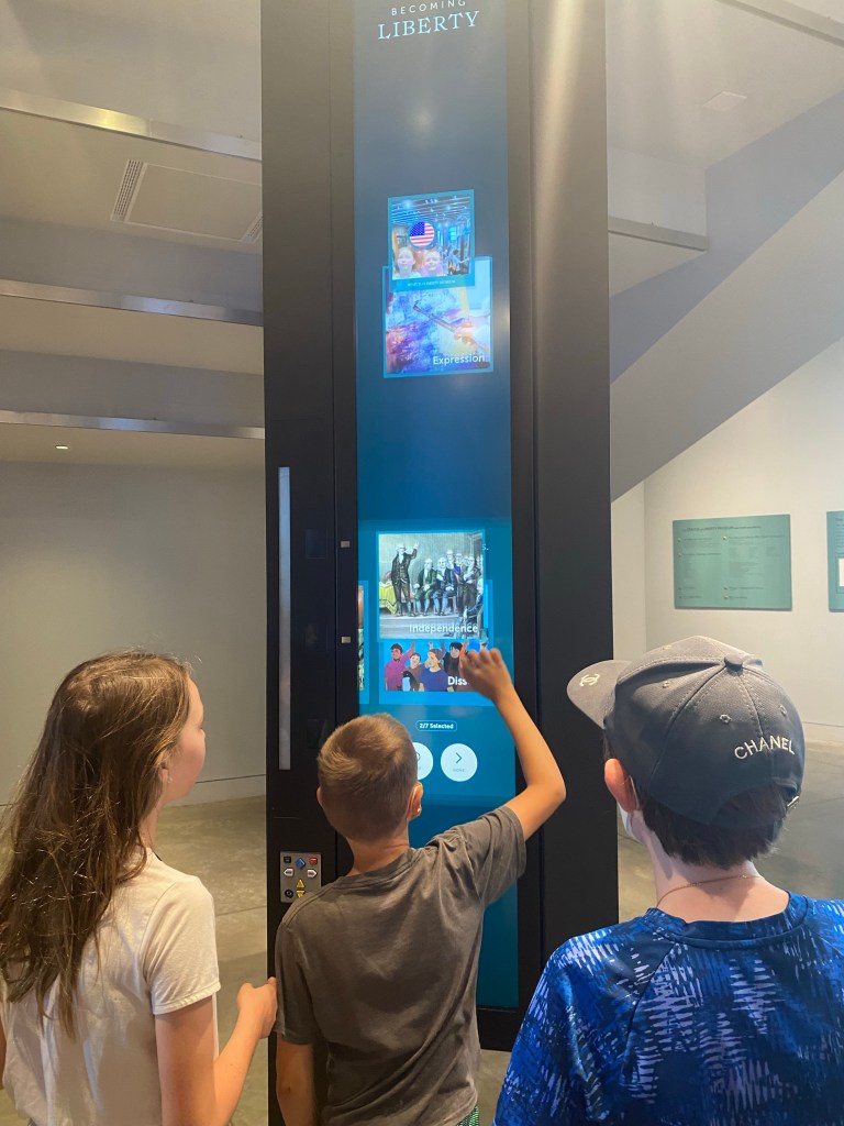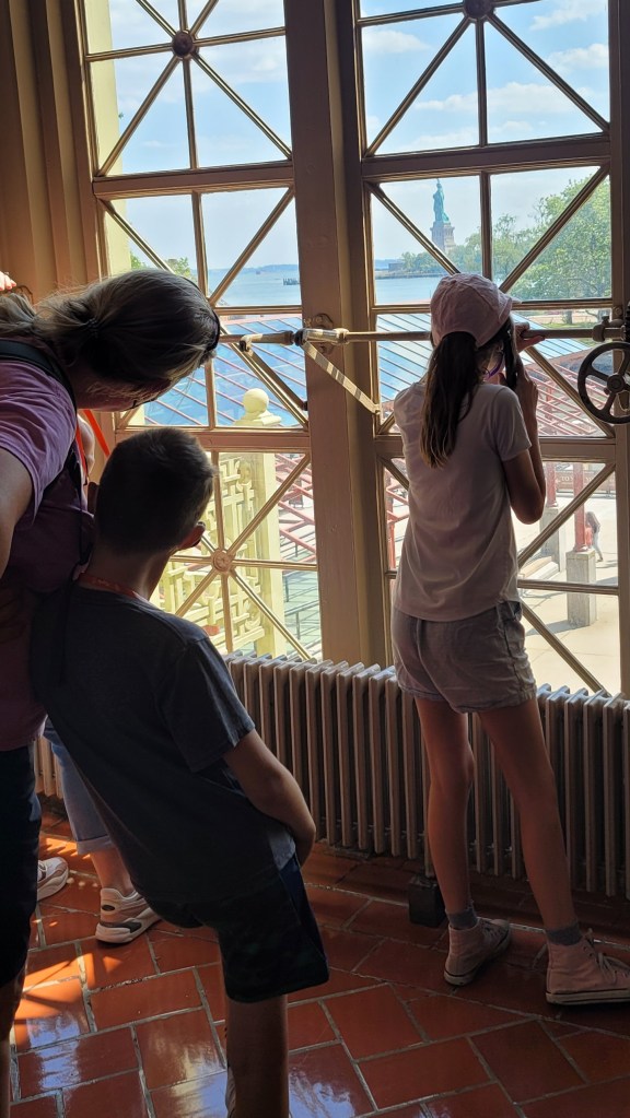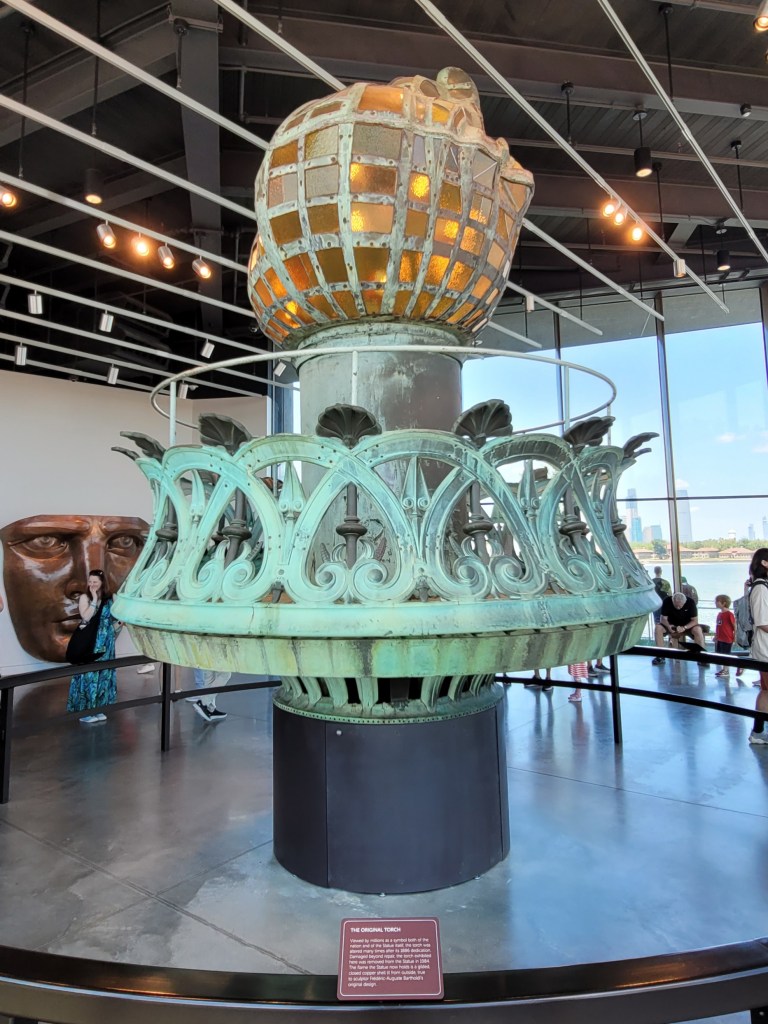 In the Museum, learned more facts and got to see the original torch. We also got to join a media display. We took a selfie and it was added into a mosaic of the Statue before our eyes.