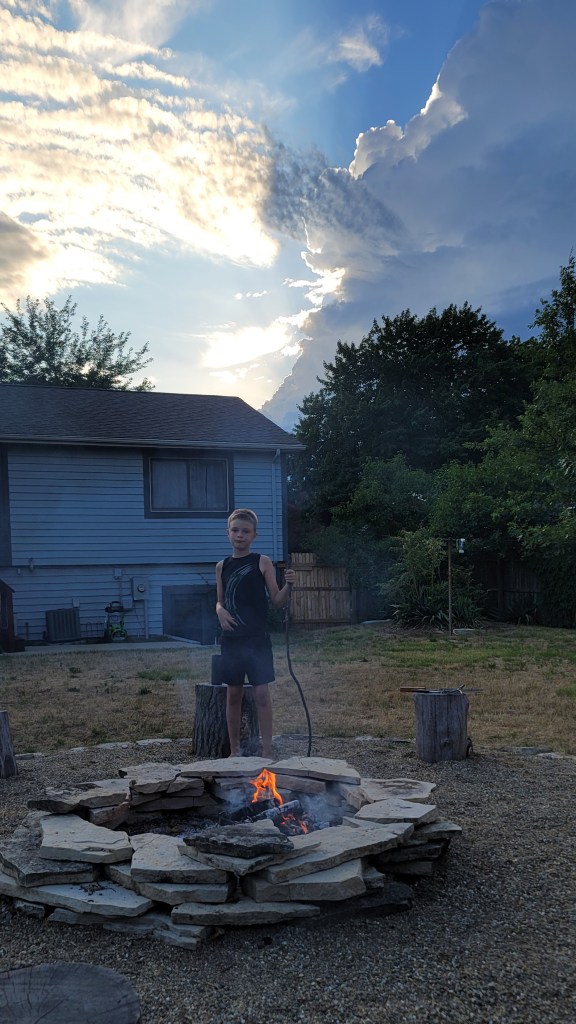 Last night the kids were beside themselves that a campfire wasn’t produced (“when a perfectly good fire ring was sitting in the back yard”). Needless to say, we bought Smores fixings and fired it up this evening.
