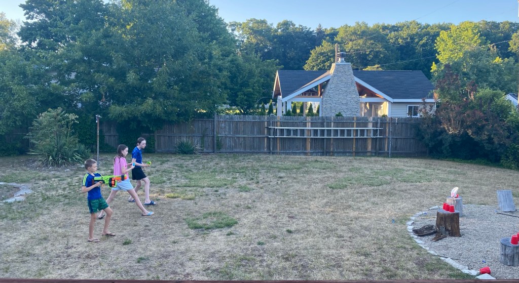 After our showers we congratulated ourselves on completing our made-up, silly challenge. We celebrated with a nerf gun shooting gallery for the kids and drinks on the deck for the grownups. We really enjoyed our last day in Union Pier with the grandparents.