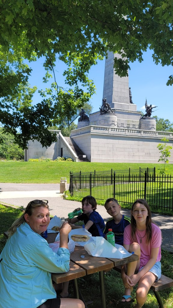 Before we got to Missouri we passed through Springfield, Illinois so we thought we’d visit one last Tomb. This one was for President Abraham Lincoln who lived most of his life in this town. First we found a picnic table outside and had lunch with Mr. Lincoln.
