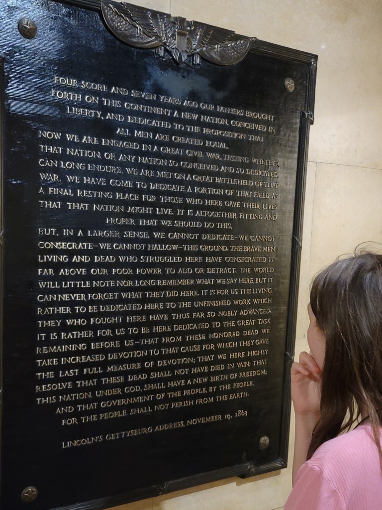 The tomb itself was beautiful and seemed fitting for a man of Lincoln’s impact. Our prolific writer Suaram spent a few moments absorbing some of his most impactful words.