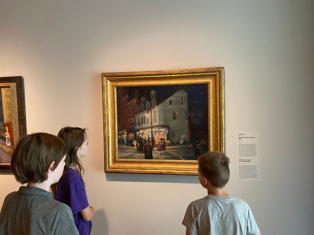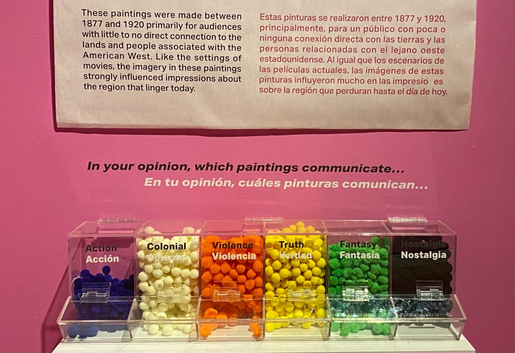 The permanent collection had some very interesting pieces and they did some unique things. In one gallery they grouped several paintings depicting the American Old West and asked patrons to drop a fuzzy colored pom into a cylinder to indicate what the painting evoked. The choices were; action, colonial, violence, truth, fantasy or nostalgia.