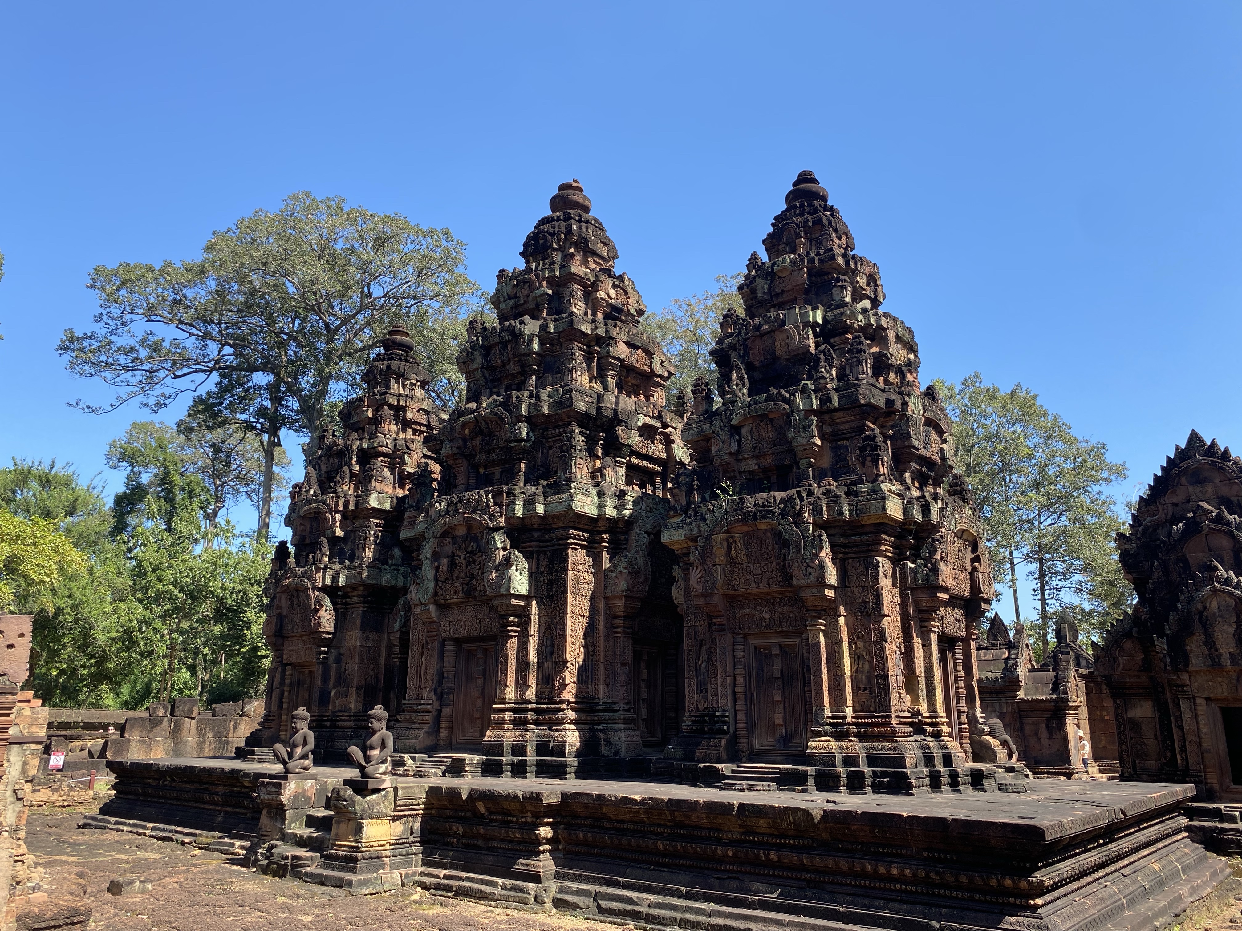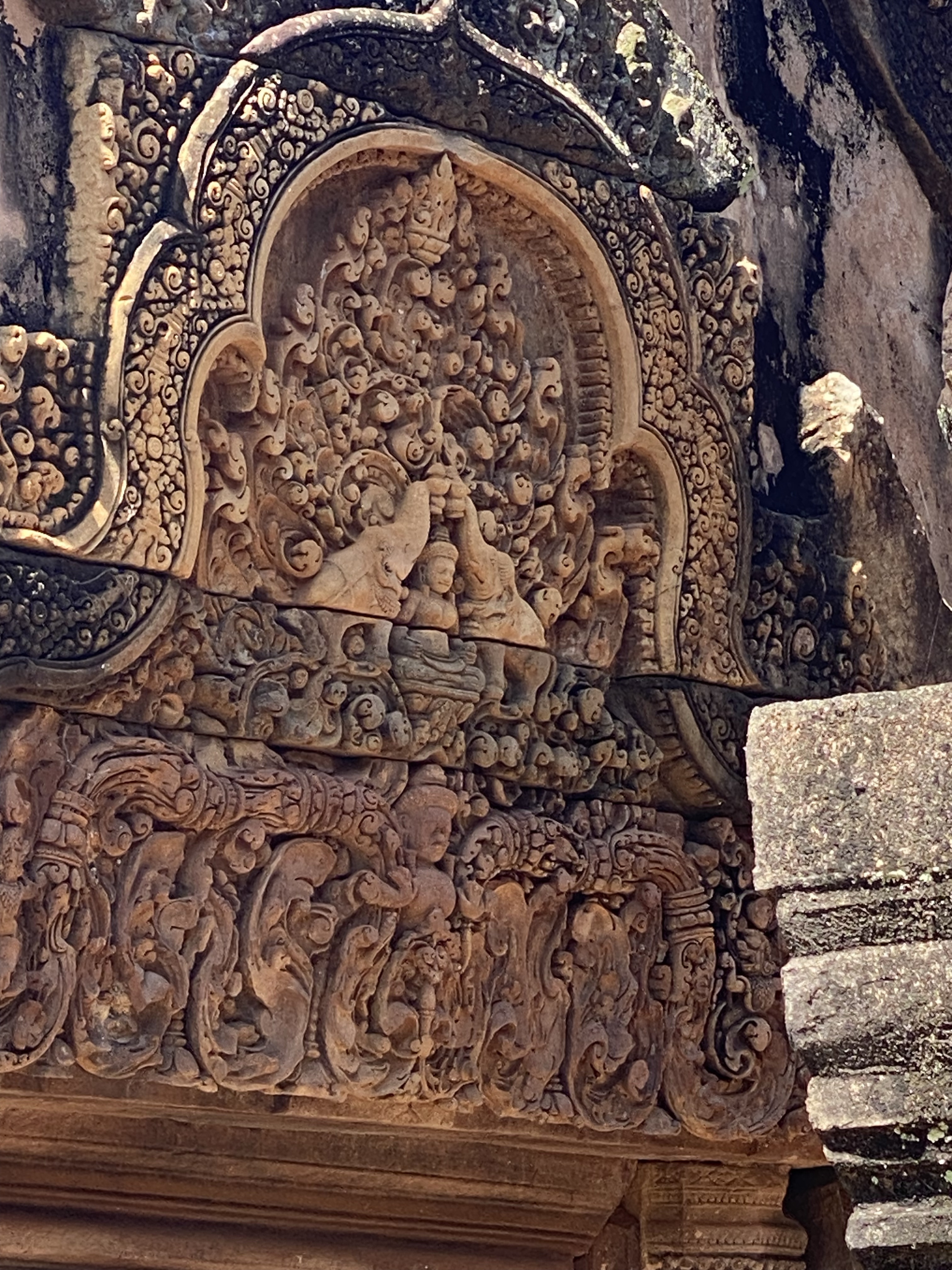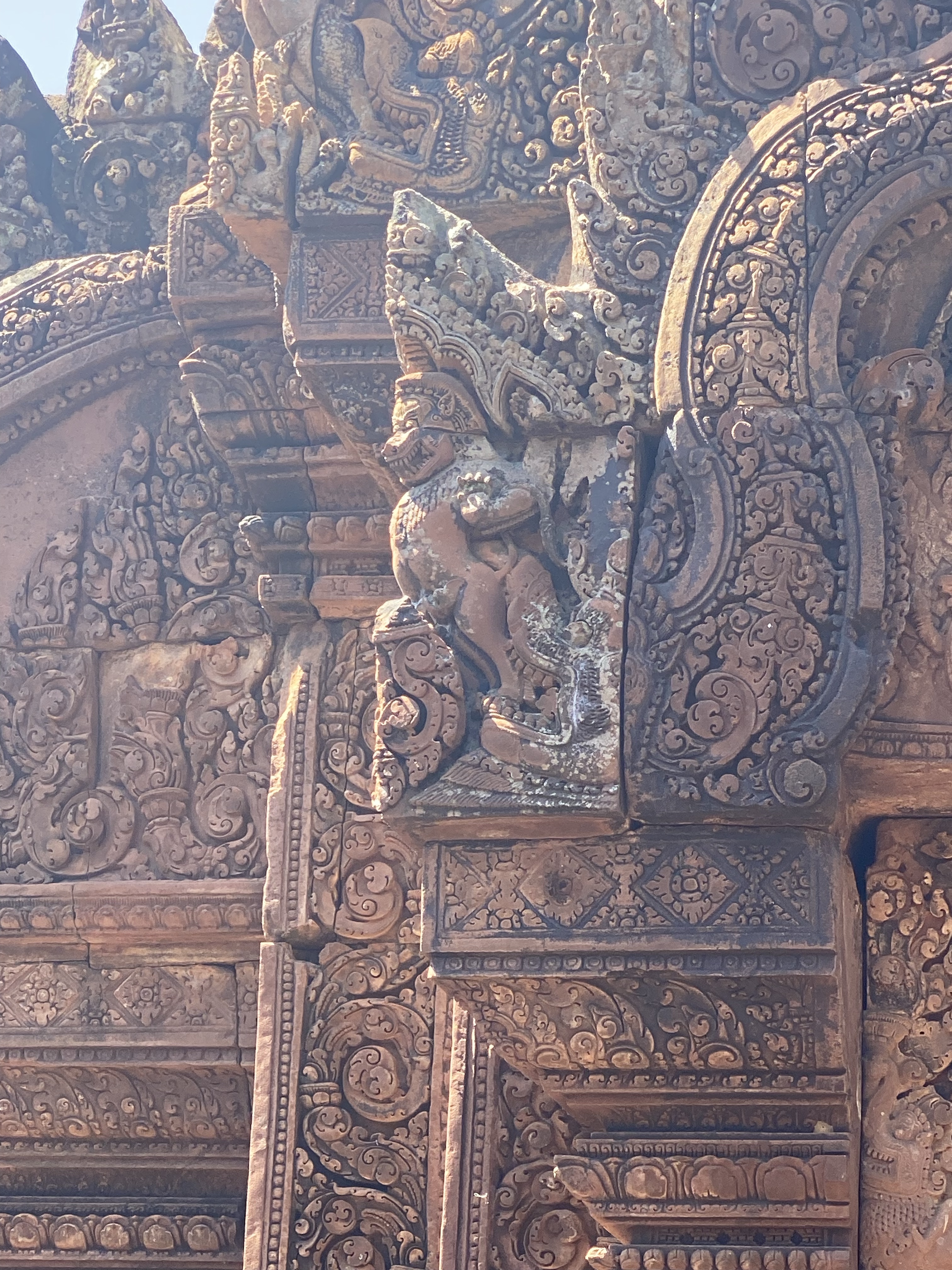 Our next visit was to a temple considered by many to be the jewel in the crown of Angkorian art. Banteay Srei is cut from stone of a pinkish hue and includes some of the finest stone carving anywhere on earth.