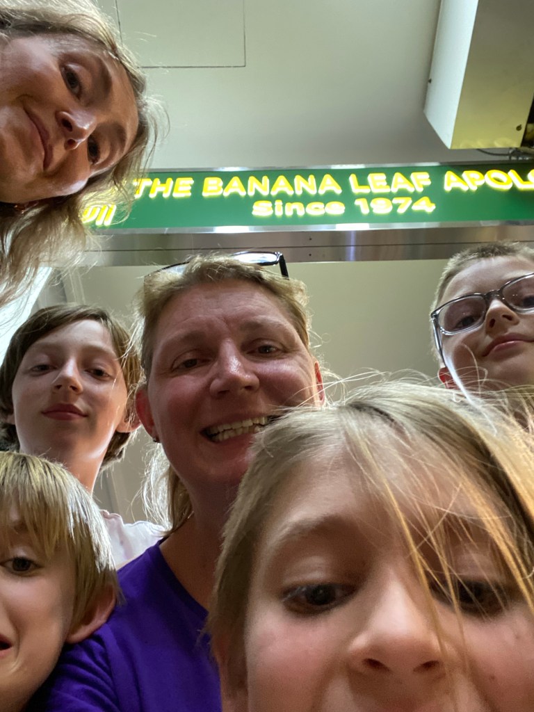 Jessica and her kids were early risers today and had two types of grapes available for breakfast. The bunch in her left hand is familiar to us. The bunch in her right hand were unusual – Korean Shine Muscat Grapes. Those grapes are very expensive (> $14). After seeing them for sale all over her first destination in Vietnam, Jessica finally decided to see what all the fuss was about. They were very large, more fleshy and delicious. But ultimately not preferred over our regular California grapes. It was great trying something novel and unexpected.