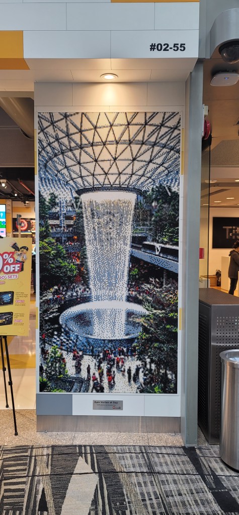 The kids did get to see the Lego store at the Singapore Airport which had a lovely mosaic of the Rain Vortex (10,000 plus legos) that we visited on Day 1.