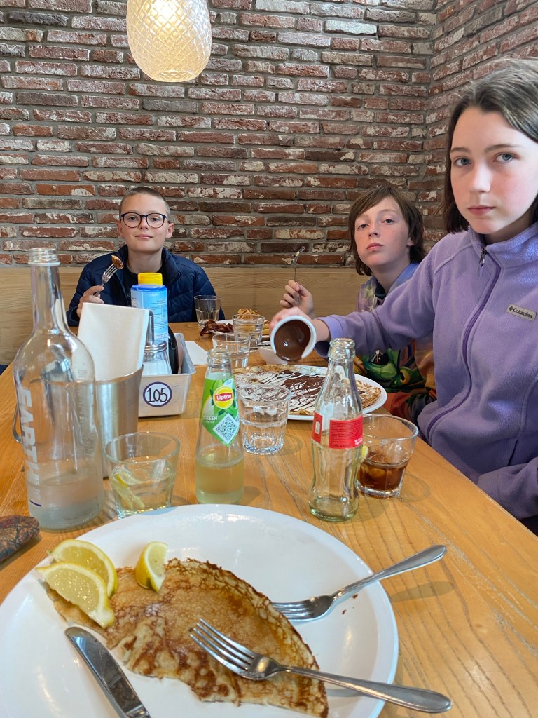 There was a prominent sign on the building next to the museum advertising Dutch pancakes, so the kids applied some pressure and inside we went. They were closer to what we call crepes, but there was no complaining and anyway, who could tell when they were buried in chocolate sauce.