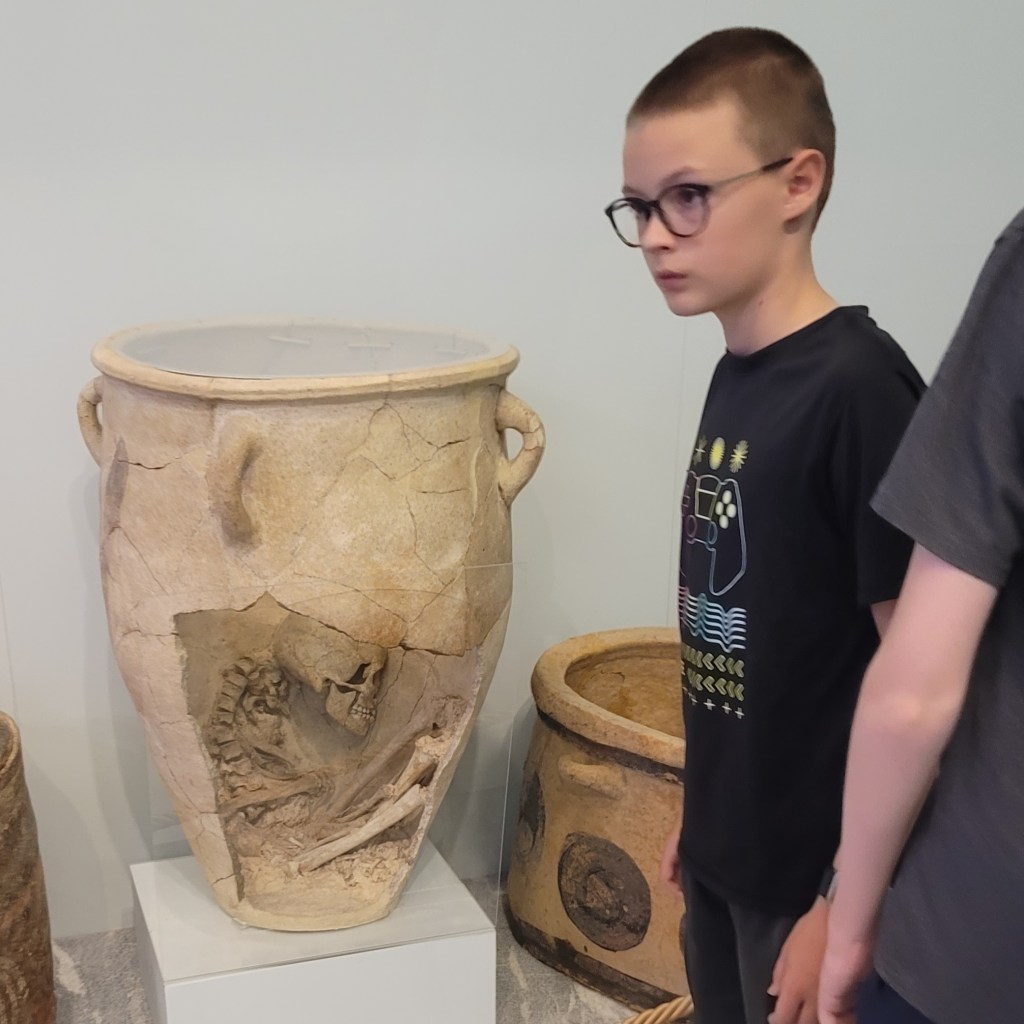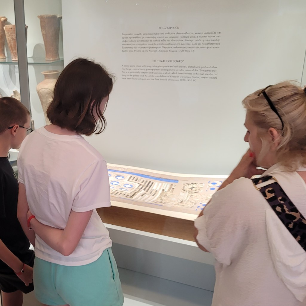 We were guided today by an archeologist whose specialty is Roman artifacts at the Knossos site, but her knowledge is extensive, and she managed to keep everyone’s attention through the main museum and the grounds of Knossos.