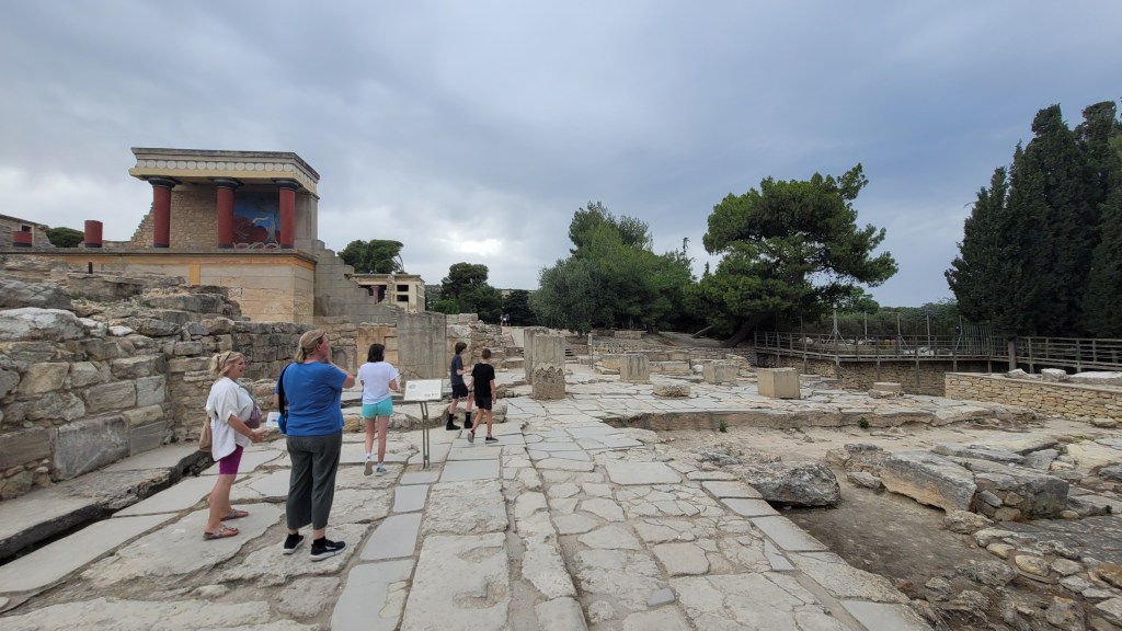 We arrived at Knossos without irreparable harm to Suzi, the car, or Brian, the Dad. We learned that the legendary mythical labyrinth is really a bit of a myth.