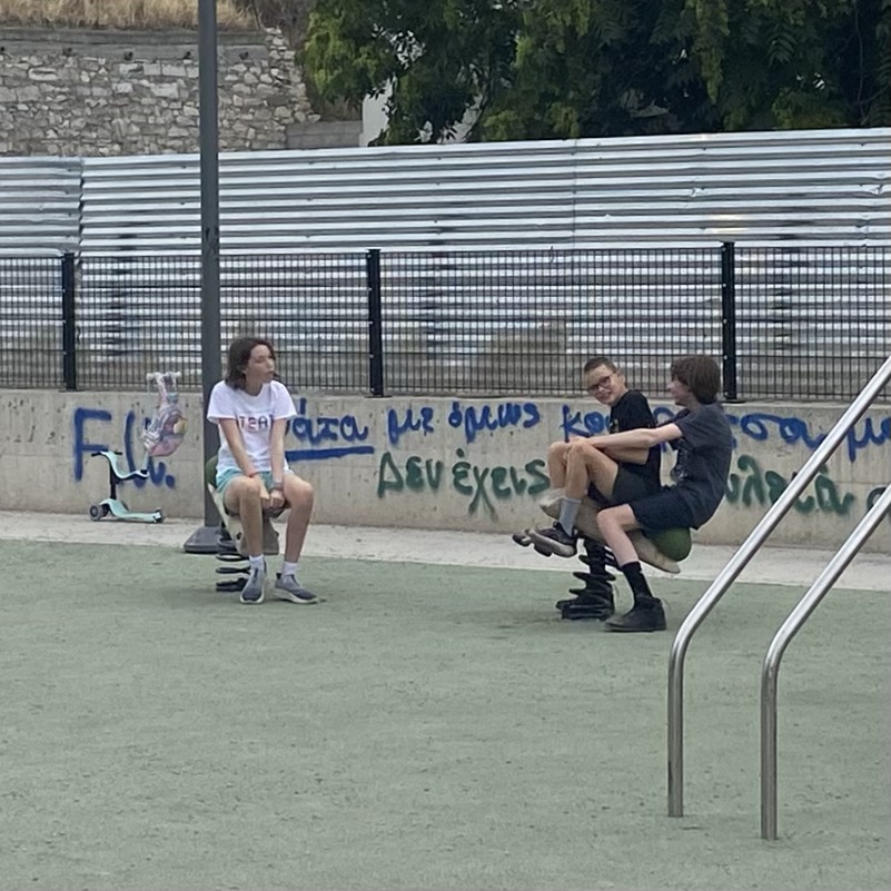 Among the most amusing is that our giant children can find a fun playground in any city in the world. This is our first Greek playground. It is probably not our last.
