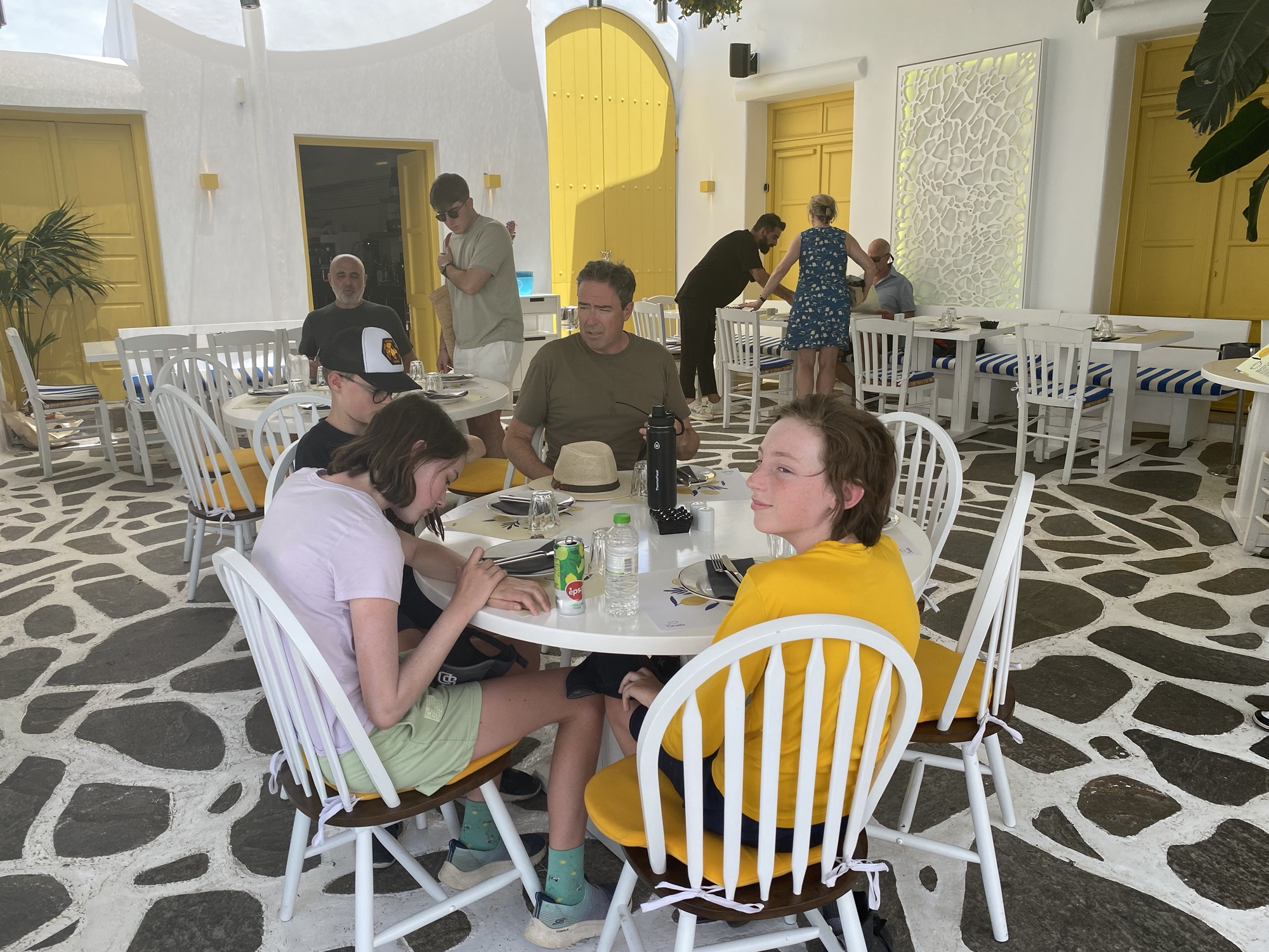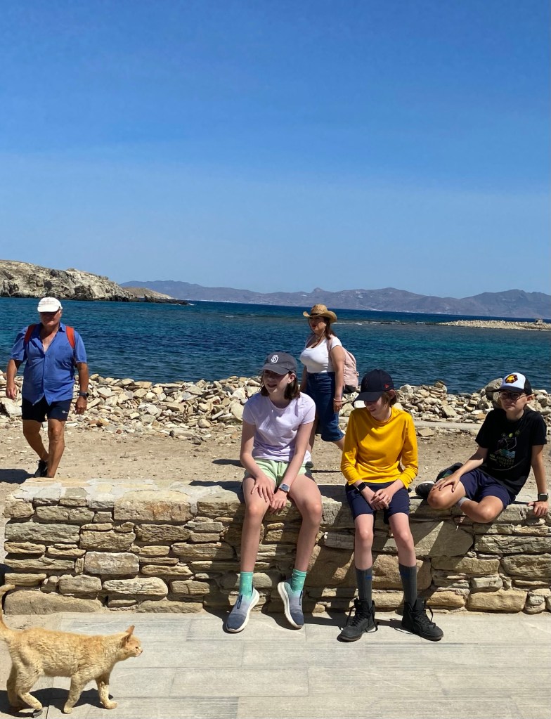 We took a day trip excursion on a ferry straight to Delos. We were there for three hours tromping around the 1.3sq mile site in the hot sun. Mom and Dad thought it was really cool, the kids liked seeing cats in surprising places.