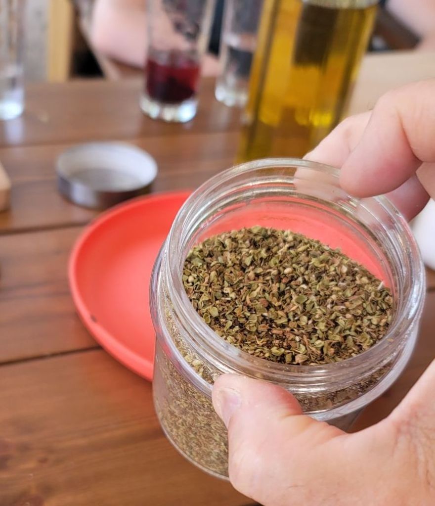 The oregano is dried and flaked. He has jars of these and we wonder why we don’t grow these in our garden. After all, our California climate has lots of similarities to Naxos and we should be able to succeed at growing something wild.