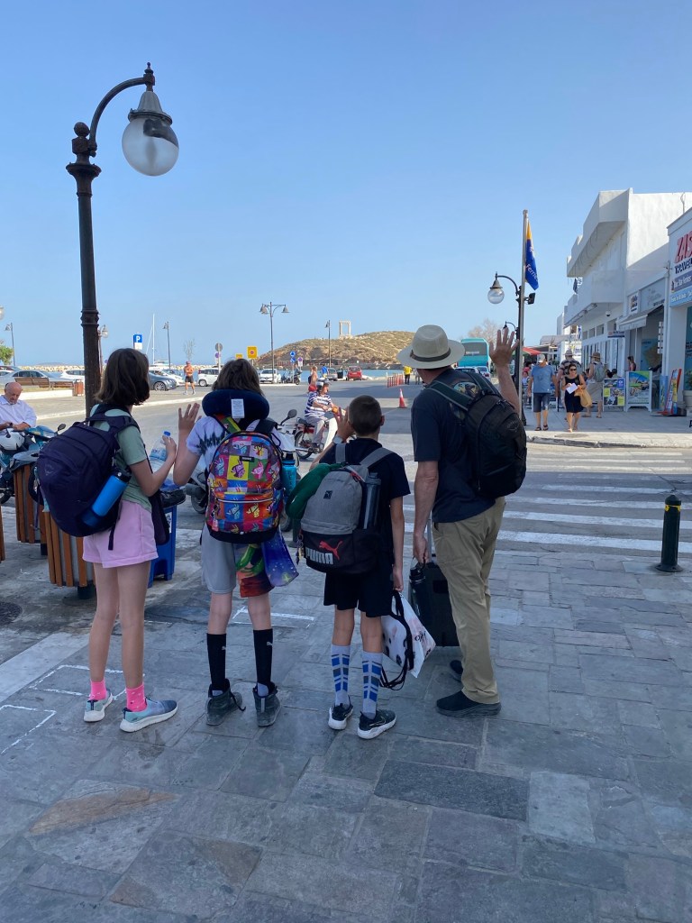 We left our Naxos apartment at about 8:15am for our walk to the ferry. It was sunny and already warm, so we chose a quick stop at a bakery for some breakfast items and then took a shady path toward the boat. We quickly waved goodbye to the Temple of Apollo and boarded the Superrunner by Seajets.