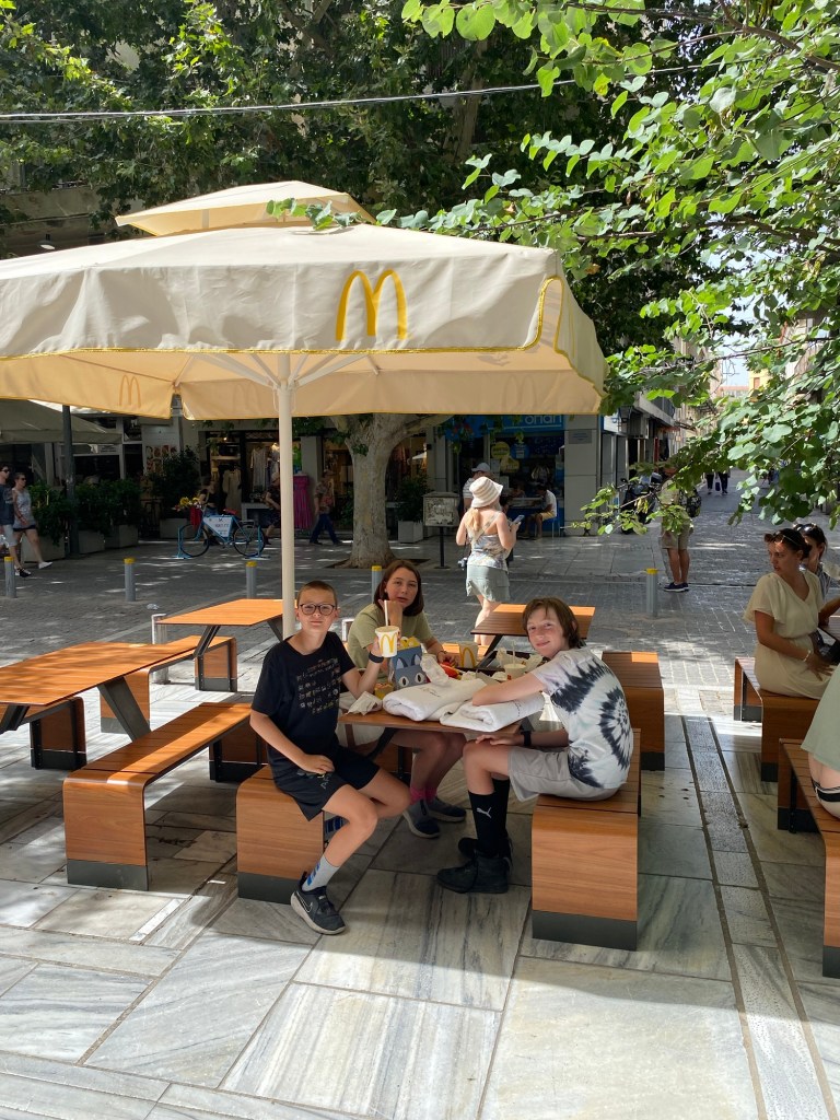 After a short rest in the apartment, we headed out for another Adventurer’s tradition. We’ve done cooking schools in 4 countries but we’ve been to a McDonalds in at least 8 as of today. Sometimes we get unusual things to try, but although it was fresher than we usually get at home it was pretty much the same menu. Brian refused and ordered something from the place next door.