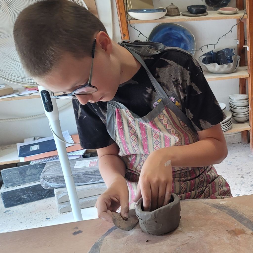 We had previously scheduled a day trip out to an Ancient Site for today’s Adventure but we canceled it due to ‘piles of old rocks’ overload for the kids. We have been inspired by all of the clay pottery that we’ve seen in the Greek museums on this trip. CreeperKitty suggested that we create some of our own, so Tiffany worked her research magic and she found an Athenian workshop that met our needs perfectly.