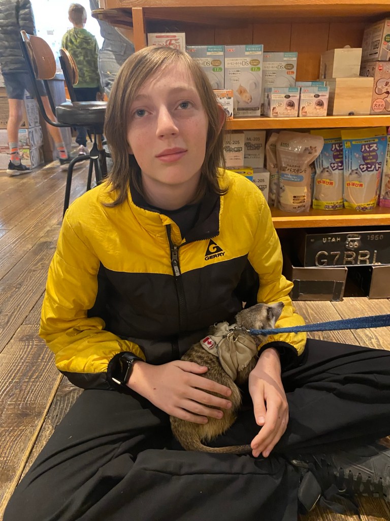 There are over 150 animal cafes in Japan. With pet ownership in the city difficult due to small living quarters, rental restrictions and busy lifestyles, they are popular with locals as well as visitors. This one was a huge hit with our crew.