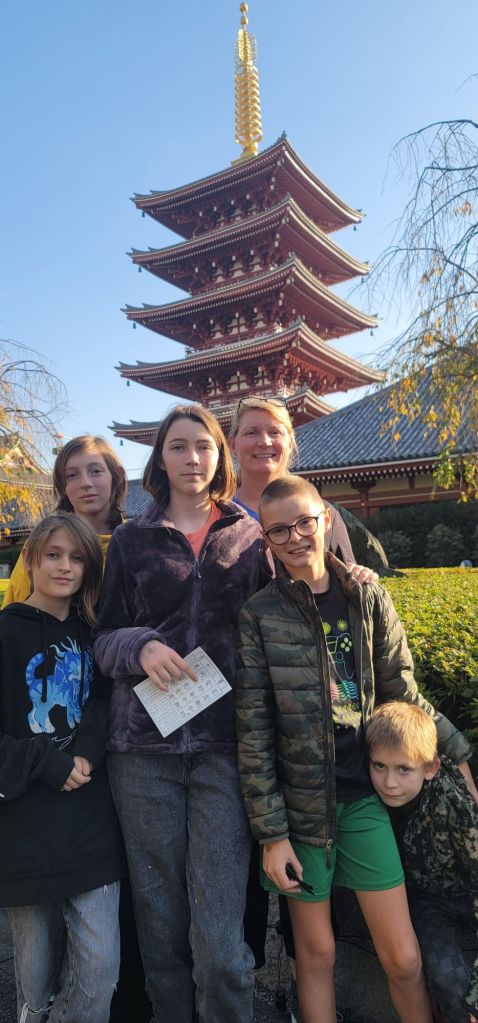 Here’s something to know before we depart on our amazing adventure – the three-story flat we are staying in has one more story but half the size of the living space we had last year in Singapore. That’s right – five rooms, a couch, and a fun-sized* kitchen for nine people (5 adventurers, 3 once-a-year package deal adventurers, and a special guest). Makes me miss our apartment in Kyoto.