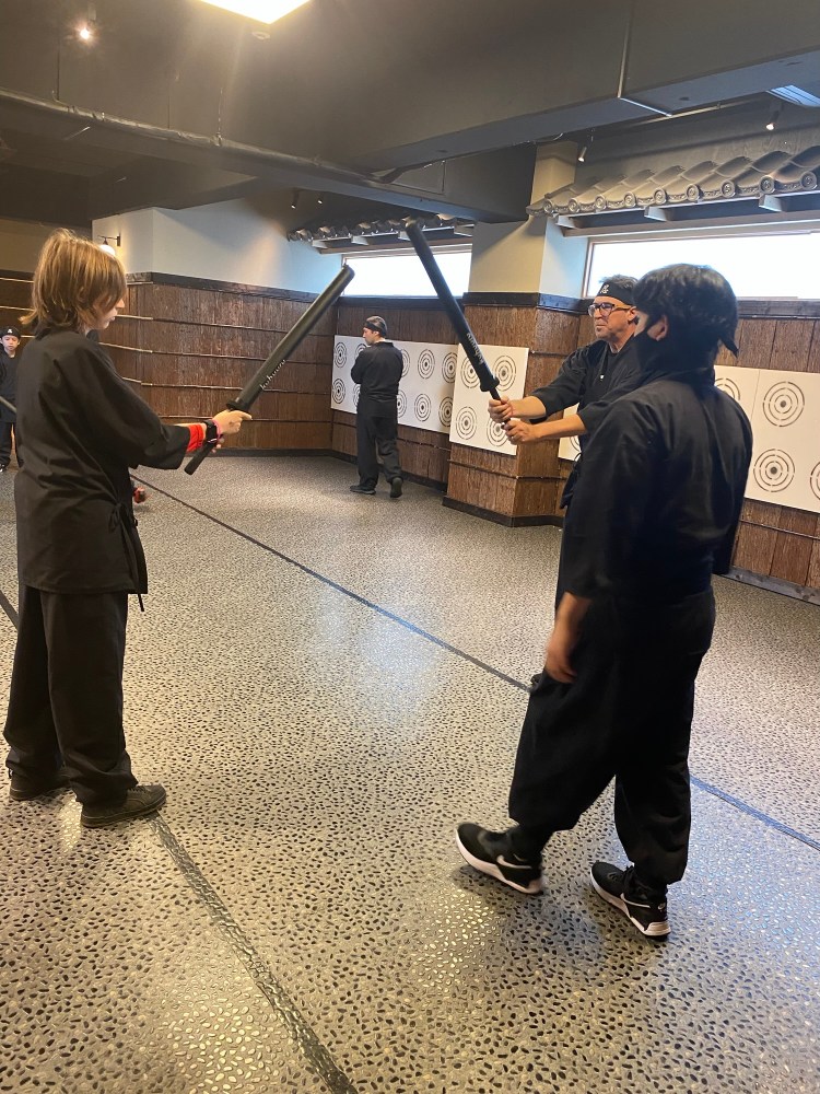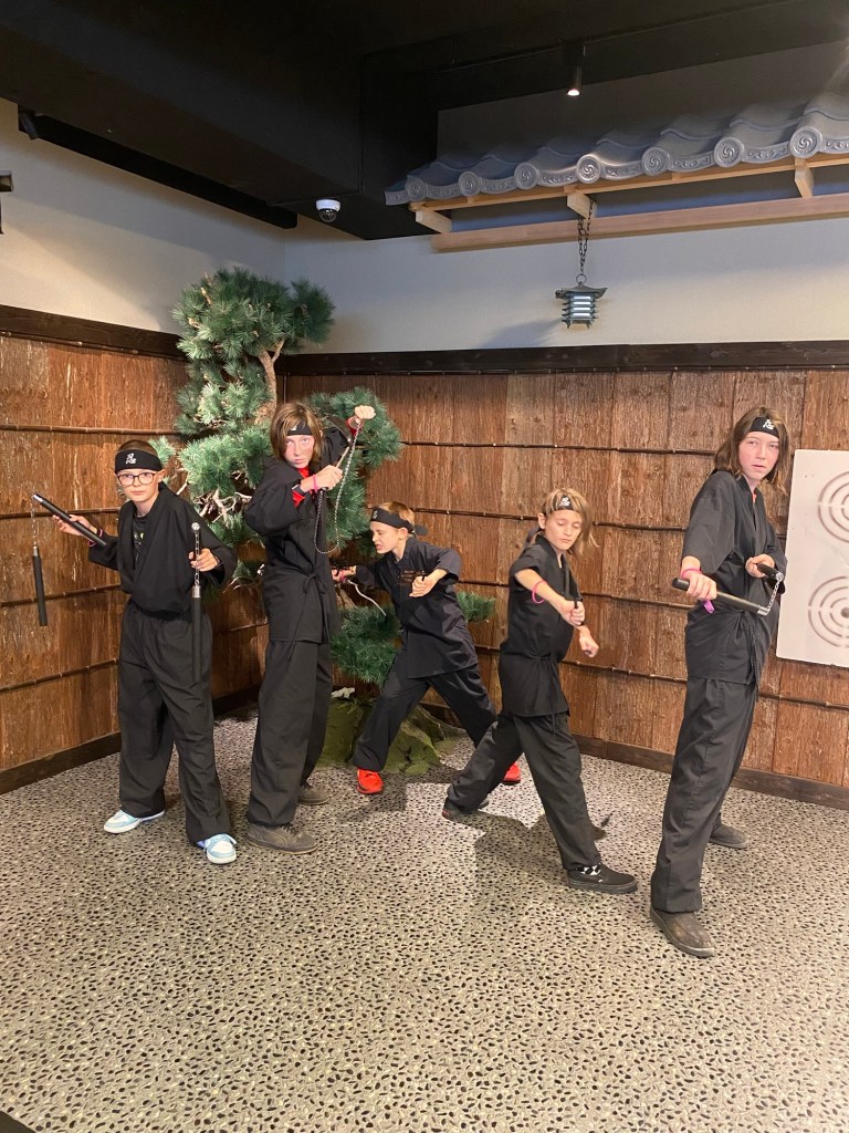 Then we lined up to practice throwing ninja stars and shooting blow darts out of guns. There were a bunch of targets which everyone could aim at. We started off with a few practice rounds, before heading into a competitive round. Guess which adventurer turned out to be the best at throwing bladed weapons? (Hint: His name starts with ‘toaster’).
