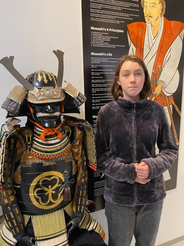 After the experience we headed over to the adult adventurers’ favorite part of the experience – the history tour! In the first room, we learned a lot about feudal Japan and saw a variety of samurai swords. All were real antiques except one which was a replica of a famous sword, and the oldest sword, a wooden one with engravings along the side of it, was over 700 years old.