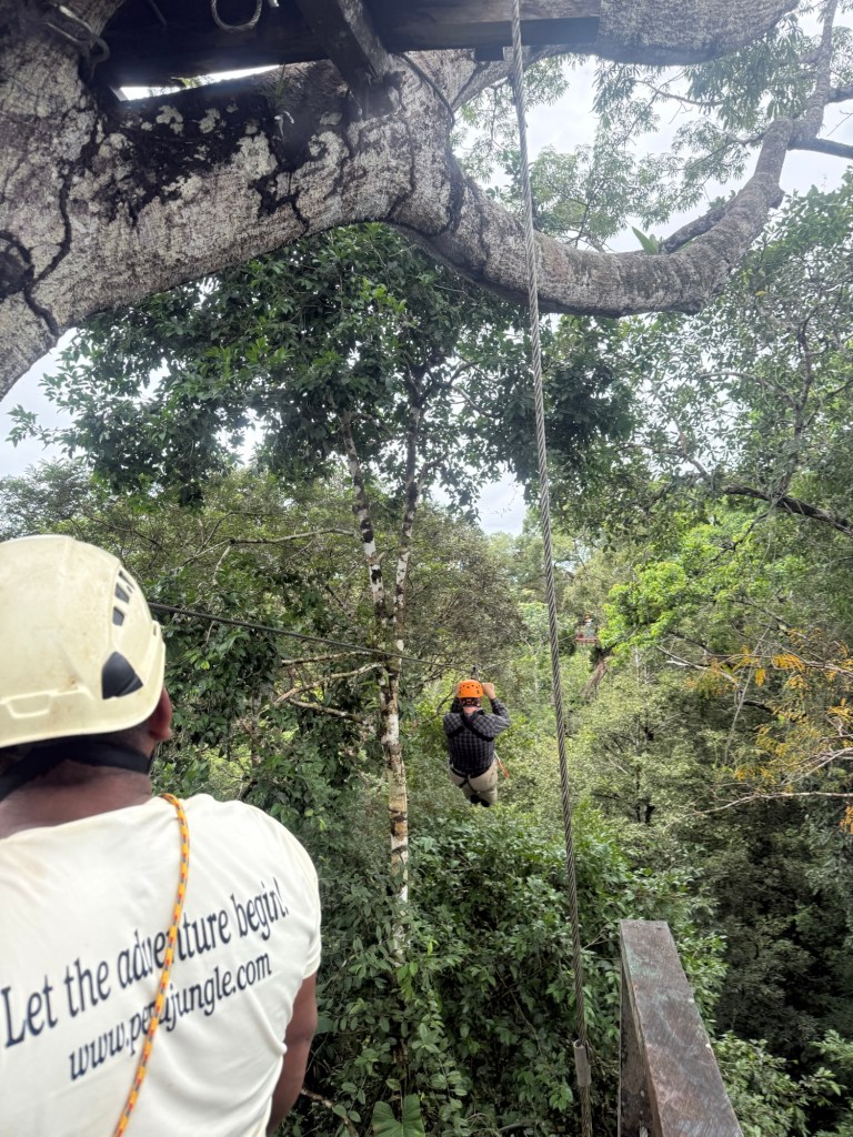 One of the jungle excursions we chose last night was zip lining from tree to tree across the forest canopy. There are four zip lines in total, all of them taking you through the trees and allowing you to see all of the wildlife on the rainforest canopy.