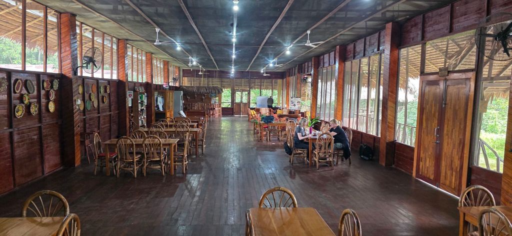 We had a two story family cabin with two bathrooms. The shower water never got above tepid but the water pressure was good and the bugs were held at bay (mostly). The windows only had screens so we got the live version of ‘sounds of the rainforest’ to help us sleep every night.