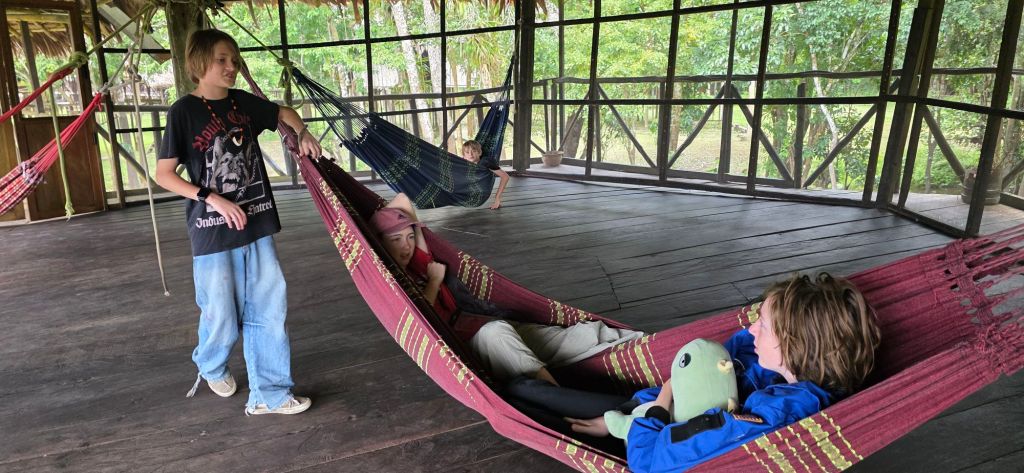 Attached by elevated walkway was a hammock room. It immediately became a clubhouse for the 5 kids – they loved hanging out there. Eventually we had to start rationing their time there so other guests could use it.