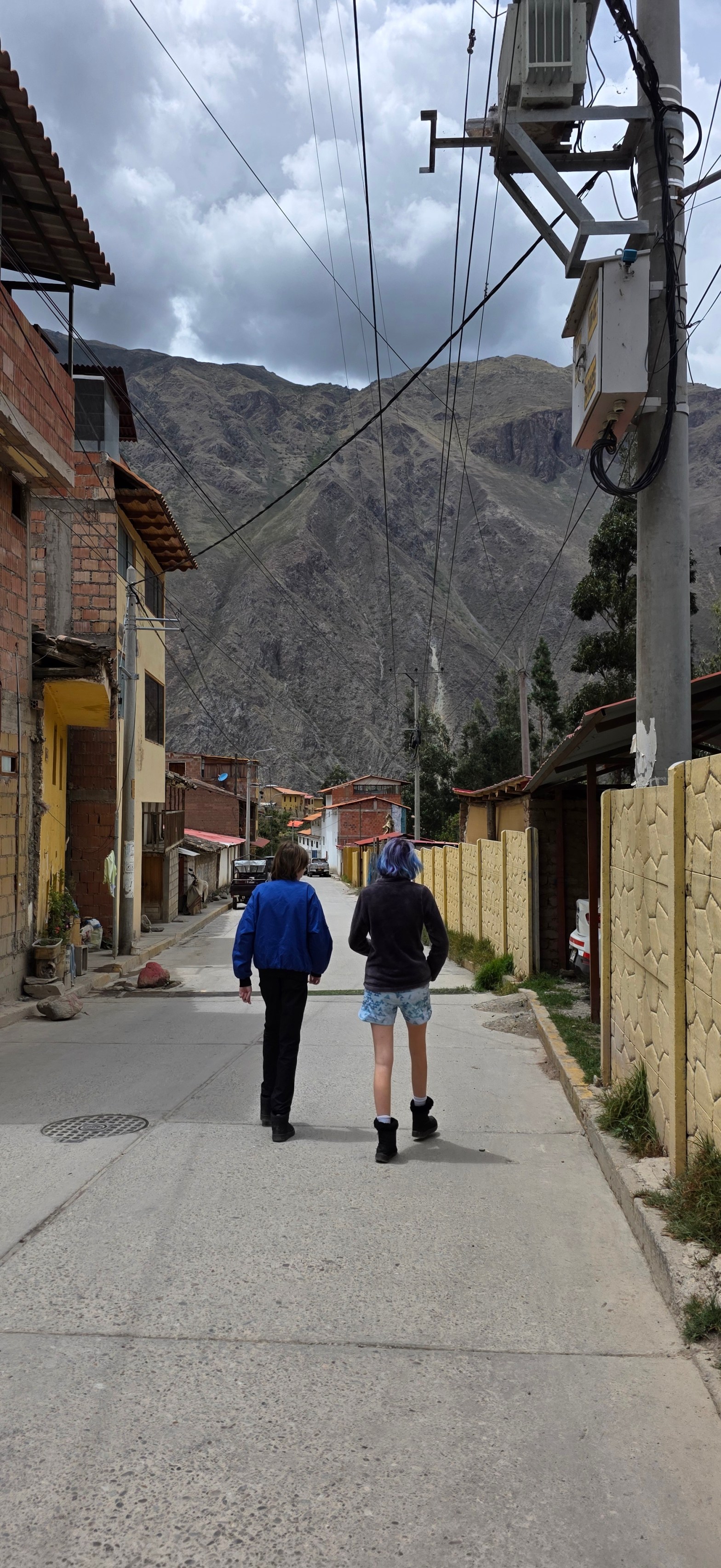 Actually, we saw tuk-tuks in the jungle town of Iquitos. These were open-air conveyance due to the heat and humidity. In Ollantaytambo the tuk-tuks are typically enclosed and the back seats have doors. The weather here is quite variable. We have 50°F temps at night and up to 70°F in the sunshine. Today, we had periods of rain too.